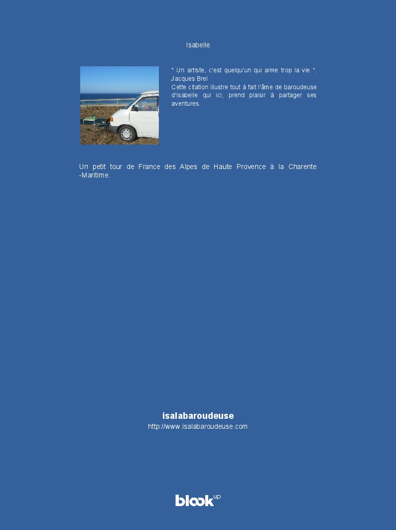 Isabelle made the blook of their their blog Overblog ! Support their creativity by buying their blook or create your own now on BlookUp!
