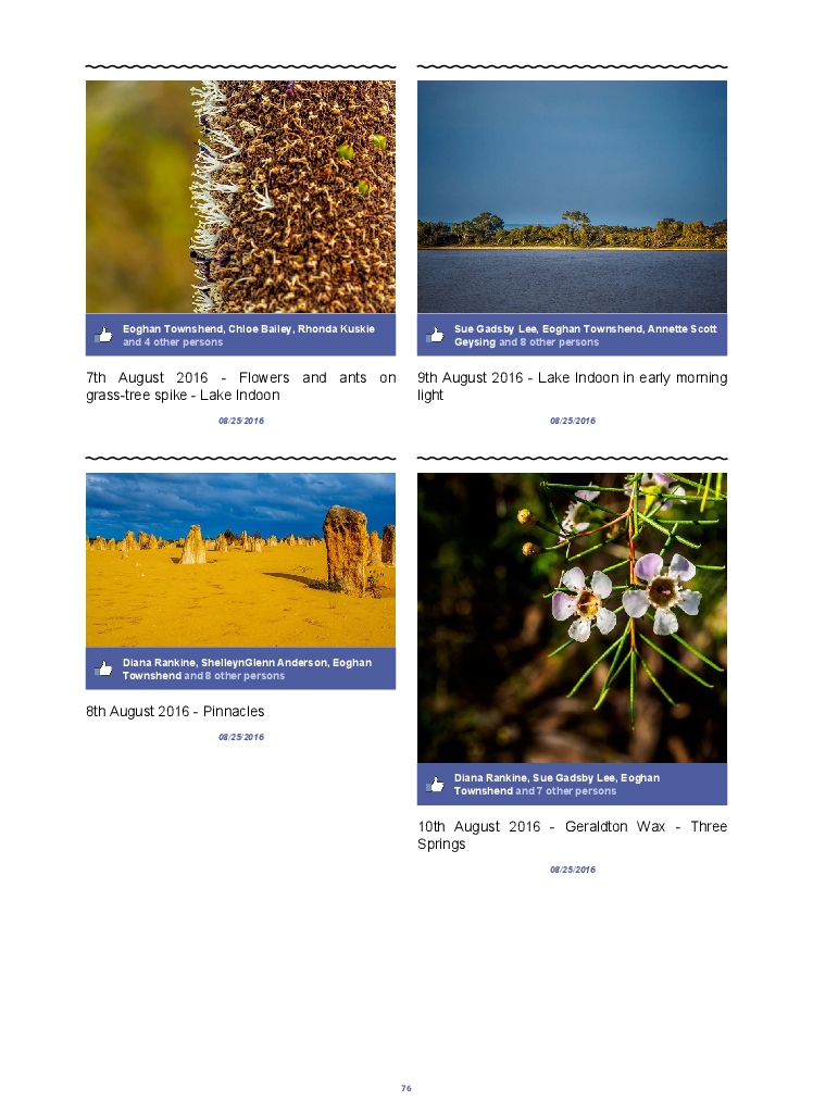 Sometime ago, I committed to publish a photo every day. This book shows all the photos I published during 2016. We travelled with our caravan to Western Australia. While there, we cruise with Odyssey Cruises on a small shop in the Kimberleys. It was a great year. I hope you enjoy the photos in our book.