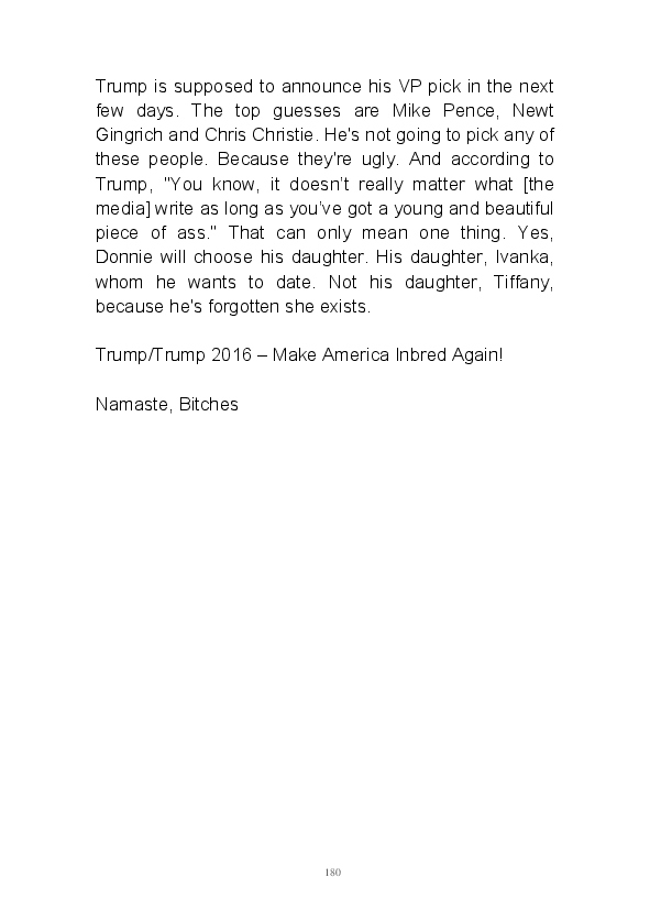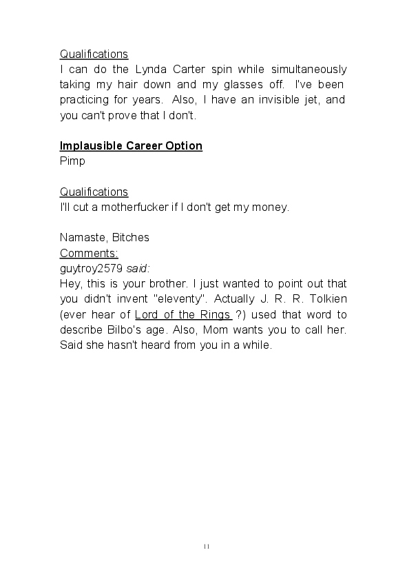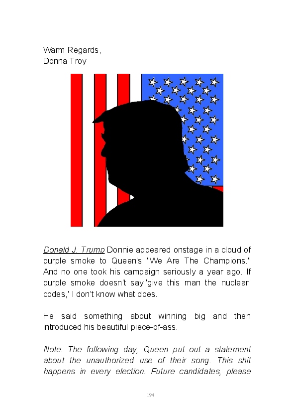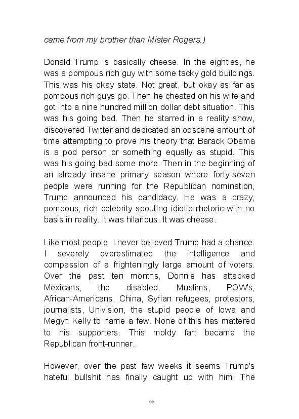 My vote LITERALLY does not count. If you understand anything about the Electoral College I might as well go into the voting booth and write lewd comments all over the walls. [Still an option.] "Third" parties and independent candidates are noble, but so was every redshirt officer aboard the Starship Enterprise. If you don't know what to do, VOTE FOR PEDRO! - Josh