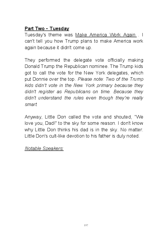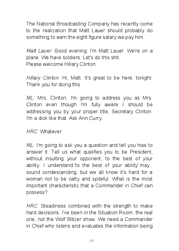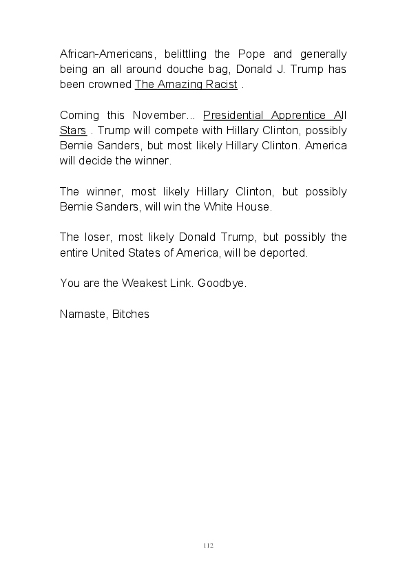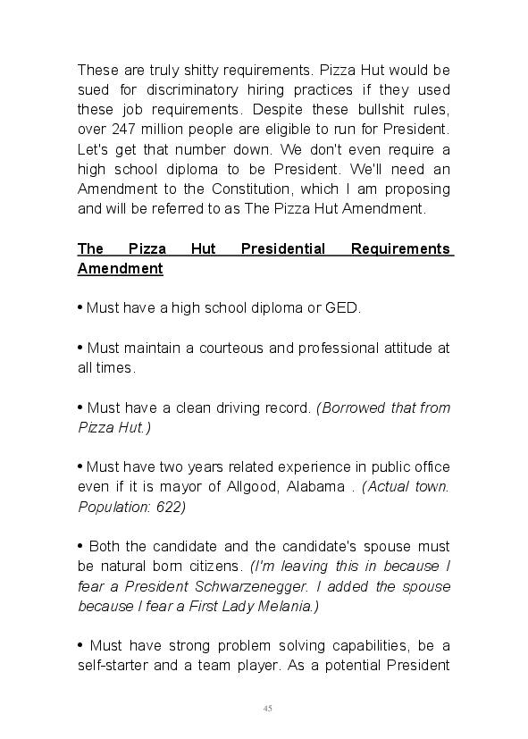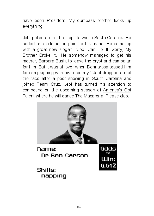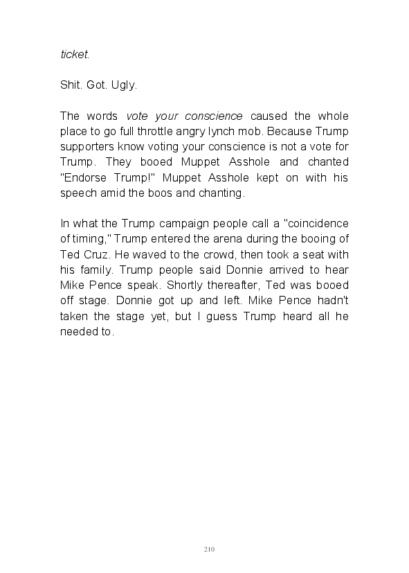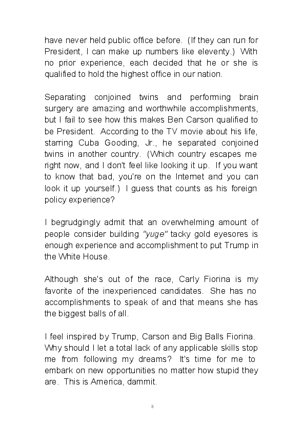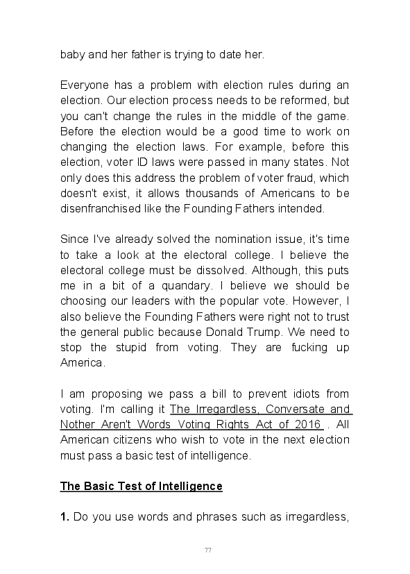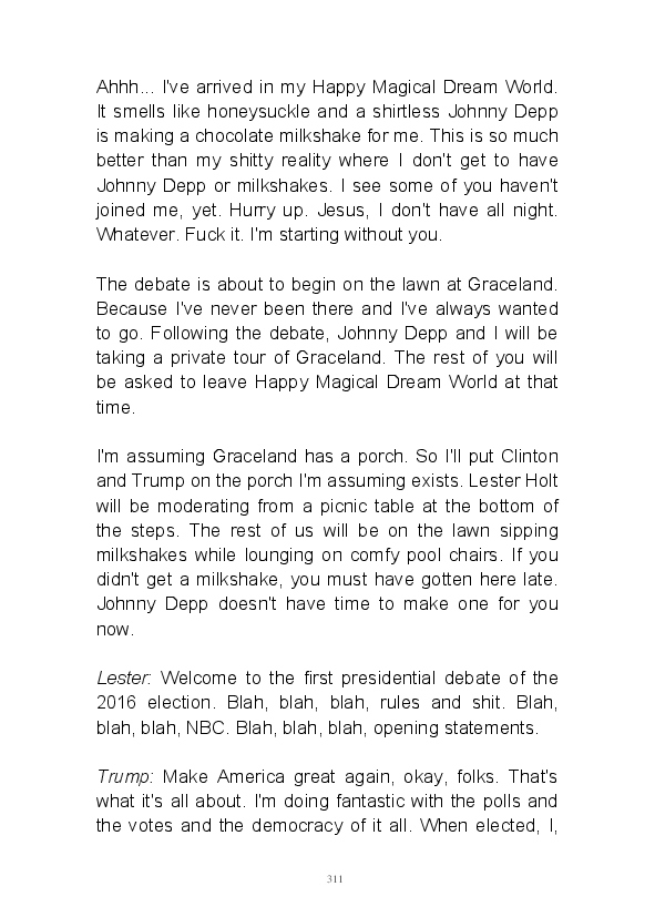 My vote LITERALLY does not count. If you understand anything about the Electoral College I might as well go into the voting booth and write lewd comments all over the walls. [Still an option.] "Third" parties and independent candidates are noble, but so was every redshirt officer aboard the Starship Enterprise. If you don't know what to do, VOTE FOR PEDRO! - Josh