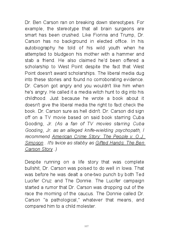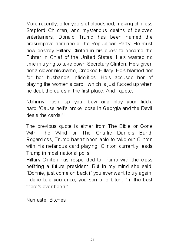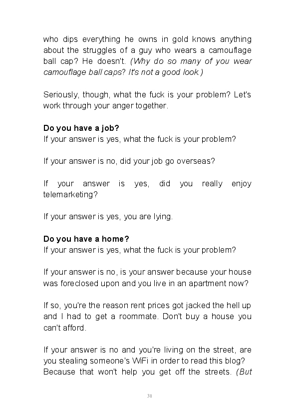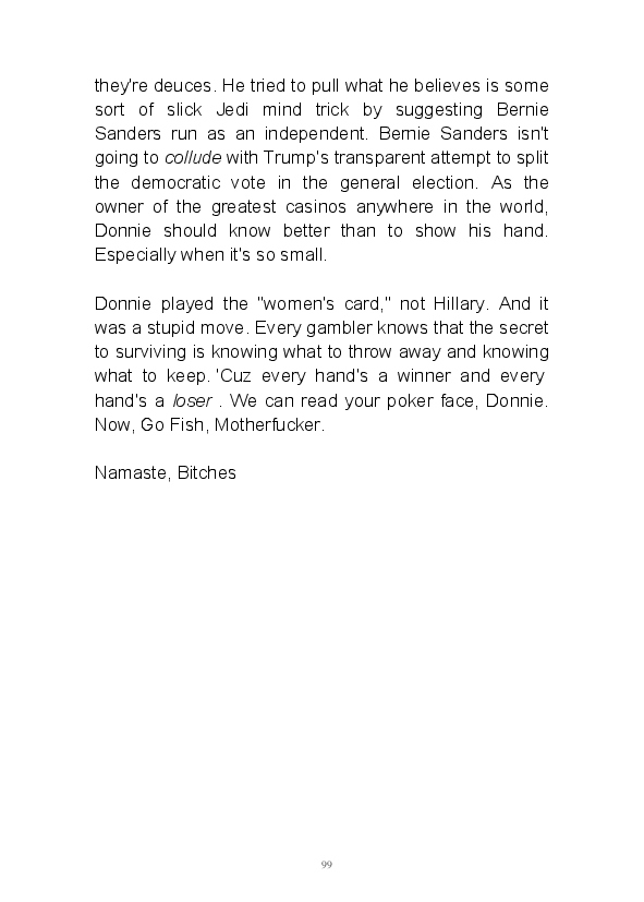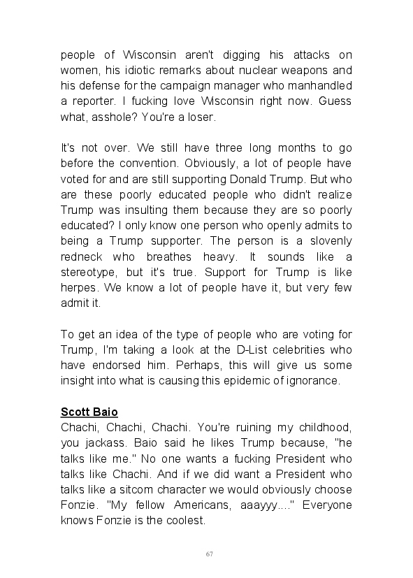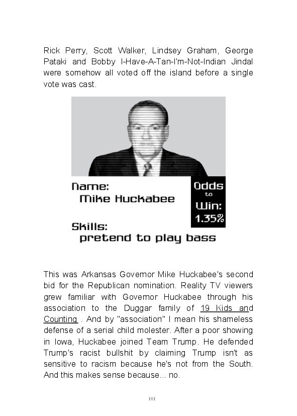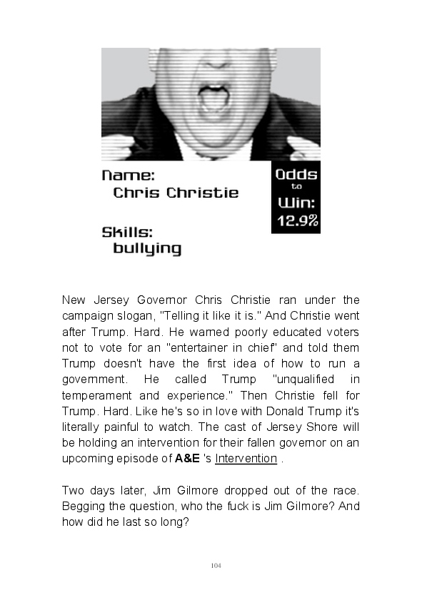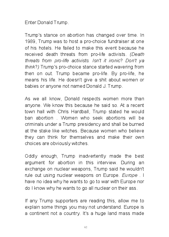 My vote LITERALLY does not count. If you understand anything about the Electoral College I might as well go into the voting booth and write lewd comments all over the walls. [Still an option.] "Third" parties and independent candidates are noble, but so was every redshirt officer aboard the Starship Enterprise. If you don't know what to do, VOTE FOR PEDRO! - Josh
