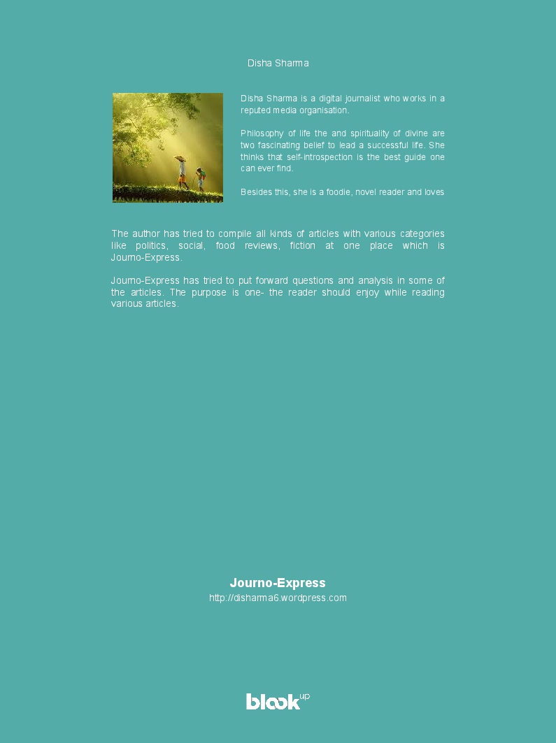 The author has tried to compile all kinds of articles with various categories like politics, social, food reviews, fiction at one place which is Journo-Express.