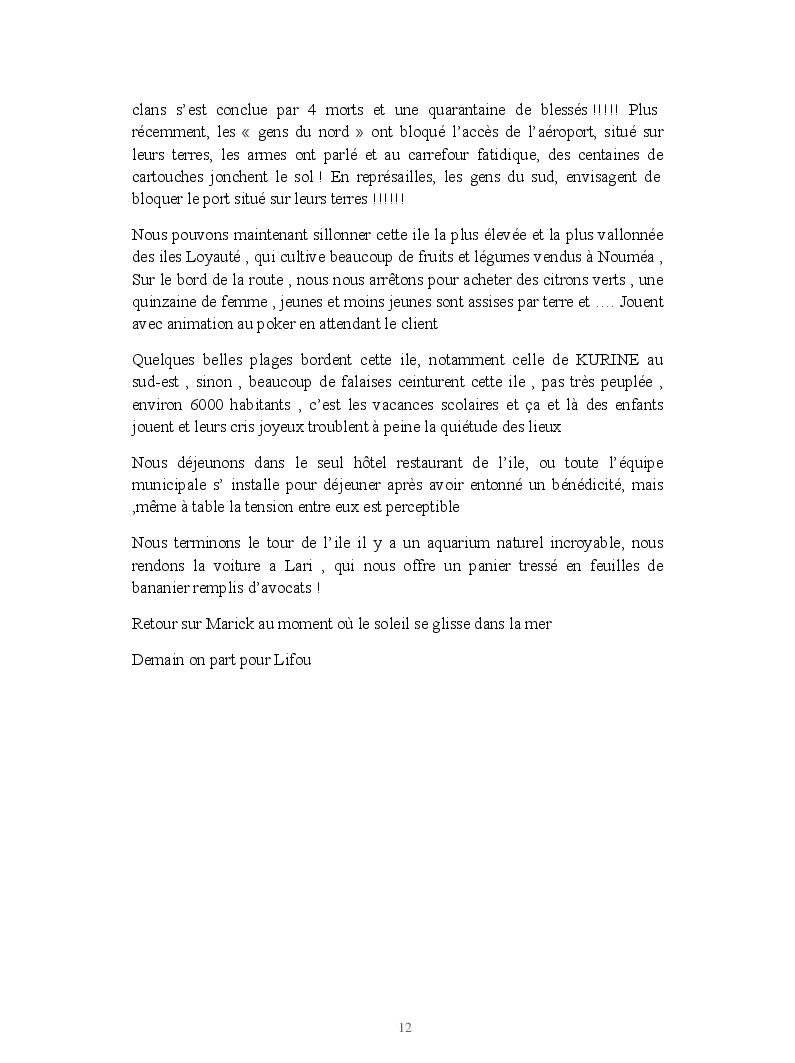 de la NOUVELLE CALEDONIE a la GUADELOUPE MARIE GALANTE