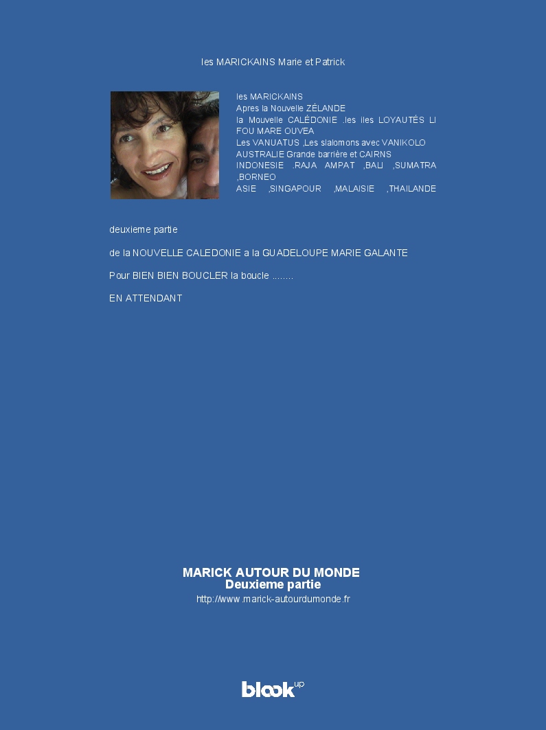 les MARICKAINS Marie et Patrick made the blook of their their blog Overblog ! Support their creativity by buying their blook or create your own now on BlookUp!