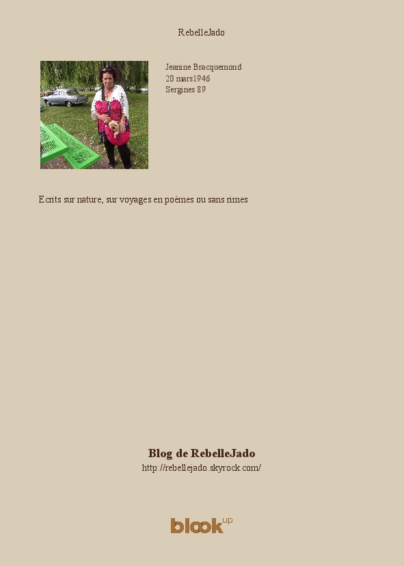 RebelleJado made the blook of their their blog Skyrock ! Support their creativity by buying their blook or create your own now on BlookUp!