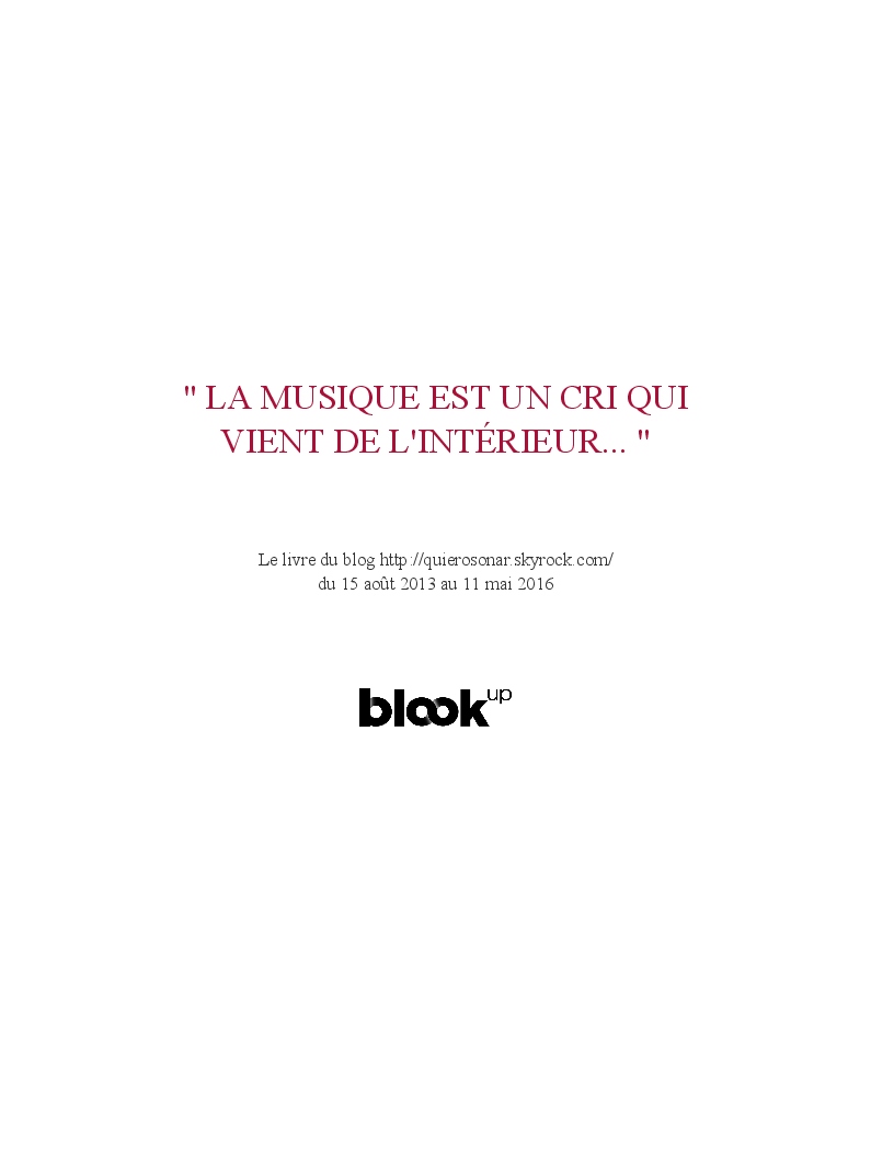 QuieroSonar made the blook of their their blog Skyrock ! Support their creativity by buying their blook or create your own now on BlookUp!