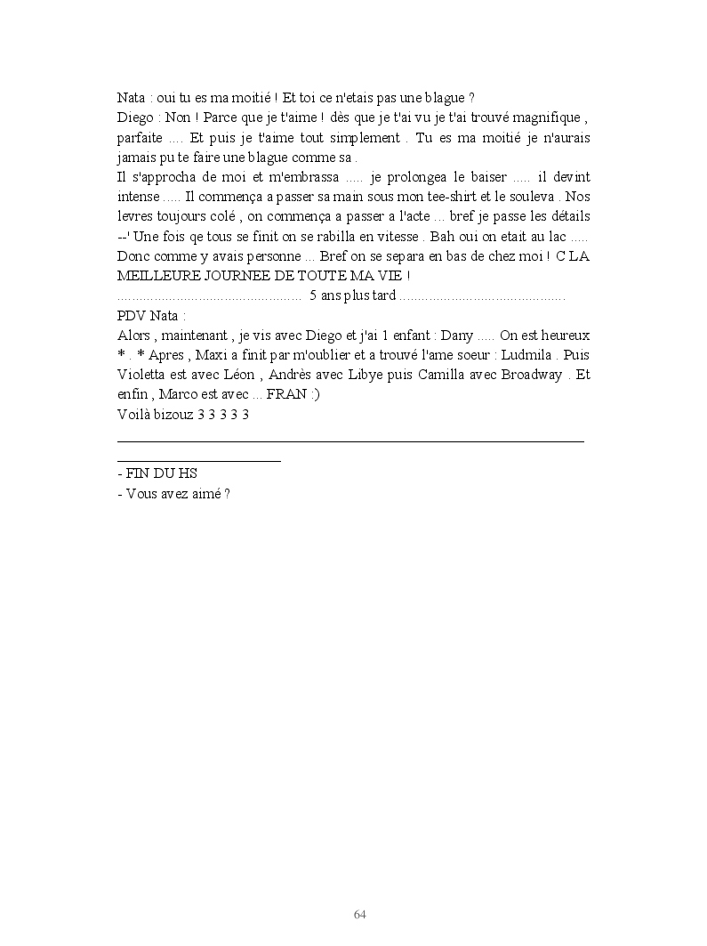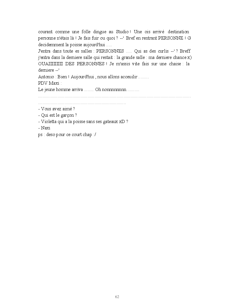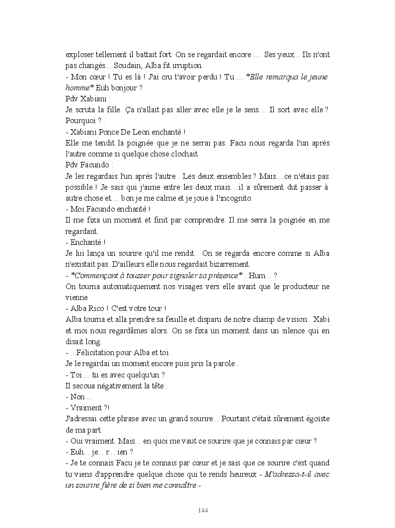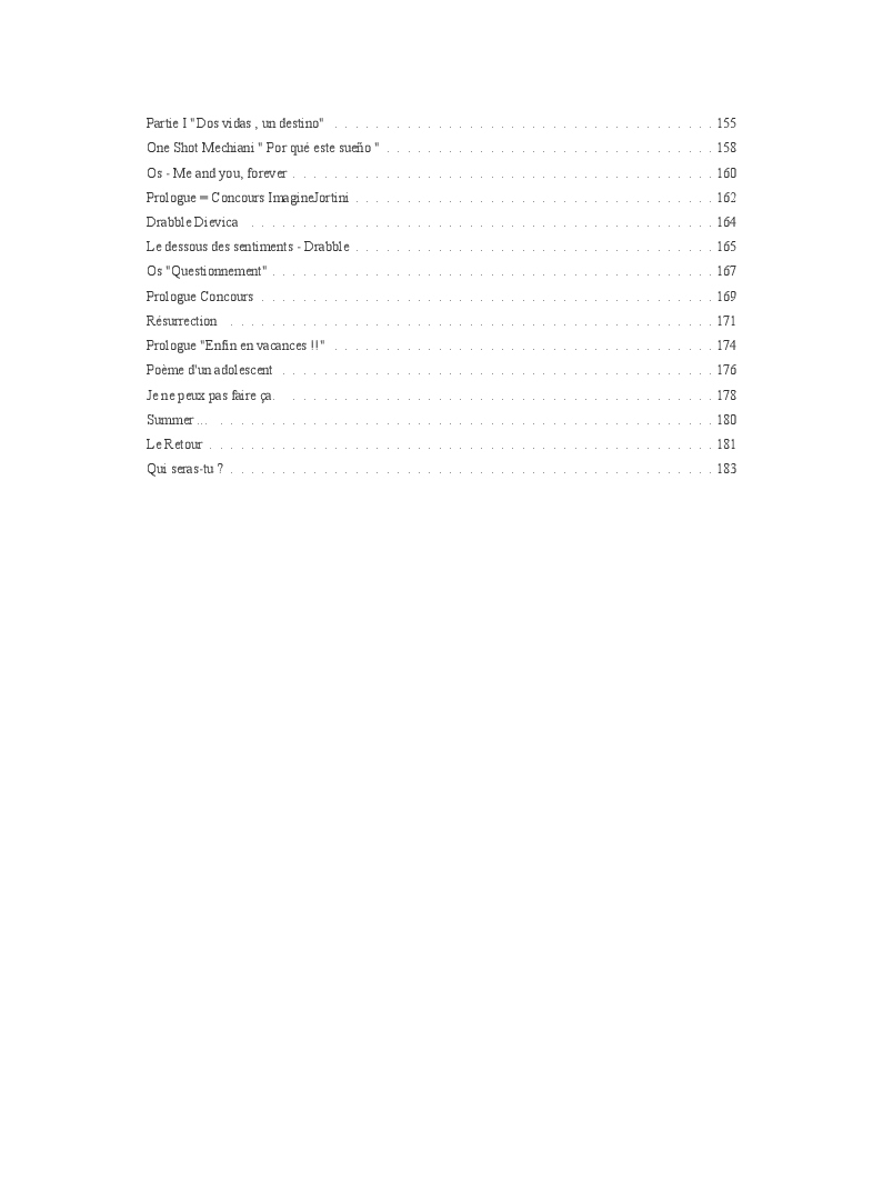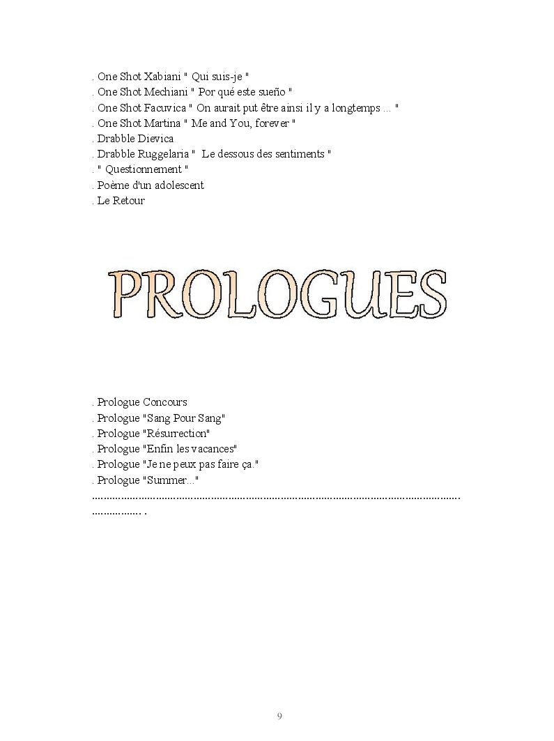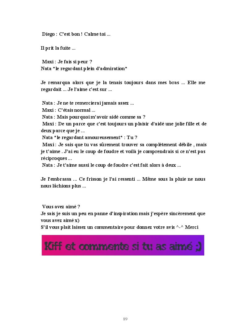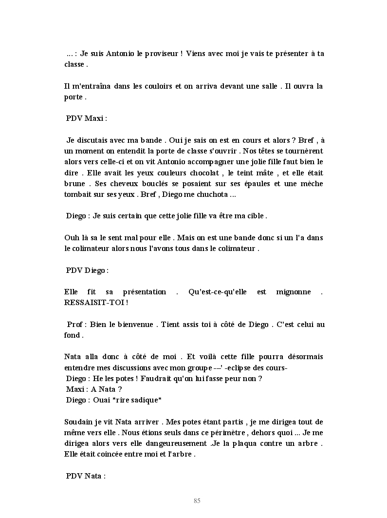 Dans ce blook, je montre mon blog QuieroSonar, qui retrace au final toute ma vie collégienne. Grâce à ce blook, vous pouvez suivre mon parcours et mes passages. Dès fois heureuses, dès fois en détresse, mes histoires montrent le passage dans lequel j'étais au moment de l'écriture. Ce rêve d'écrire un livre en tout cas, prendra peut-être forme en relisant cela. :)