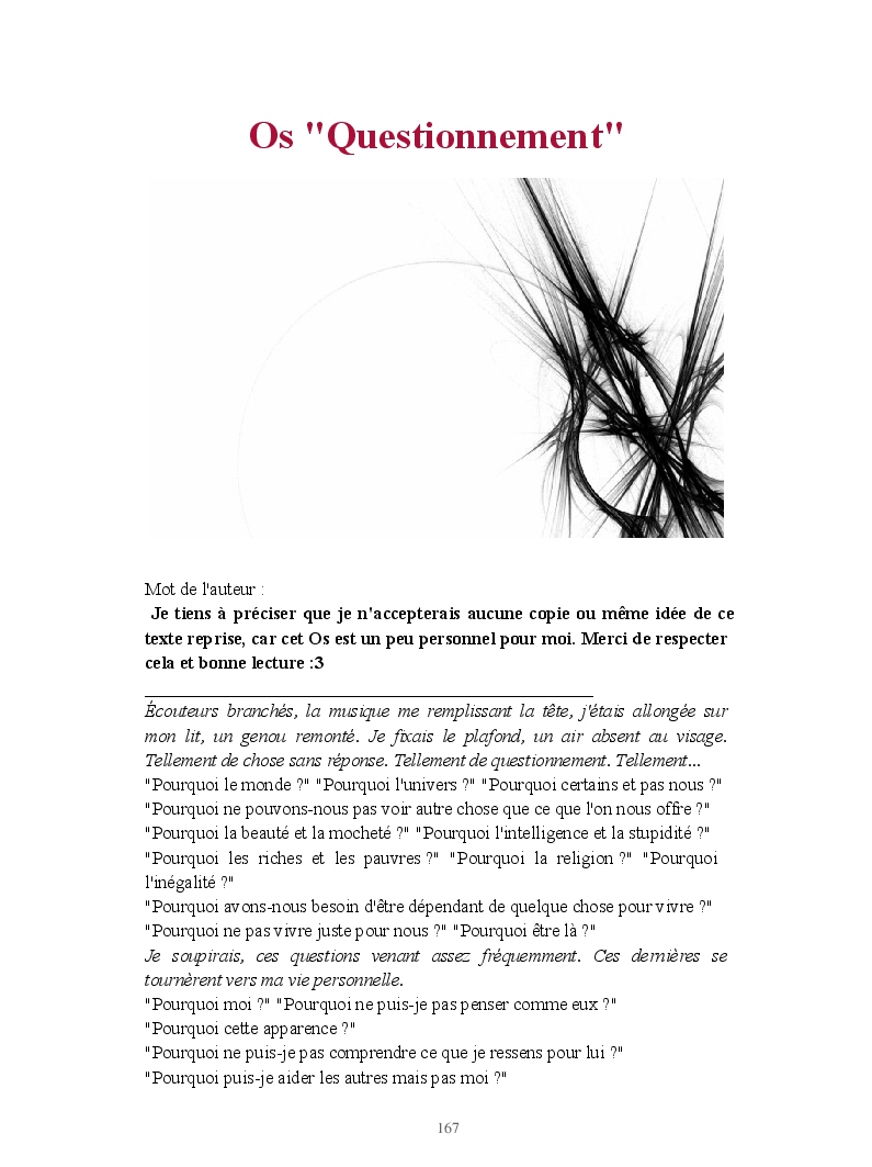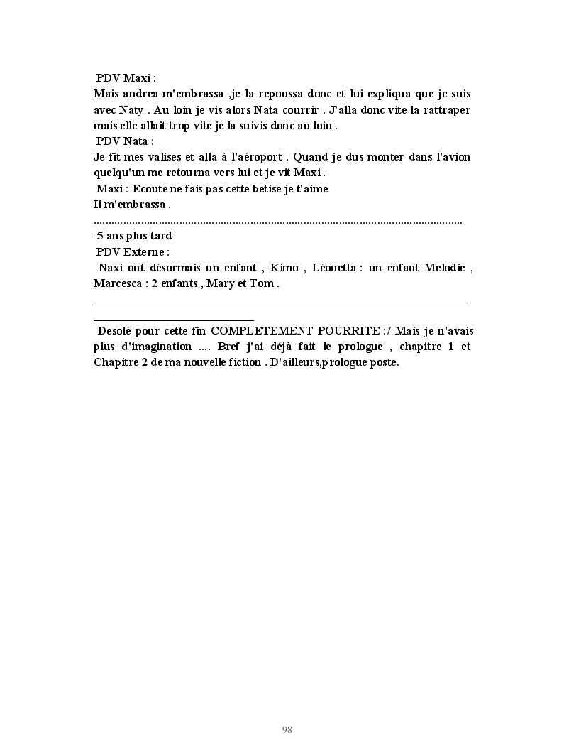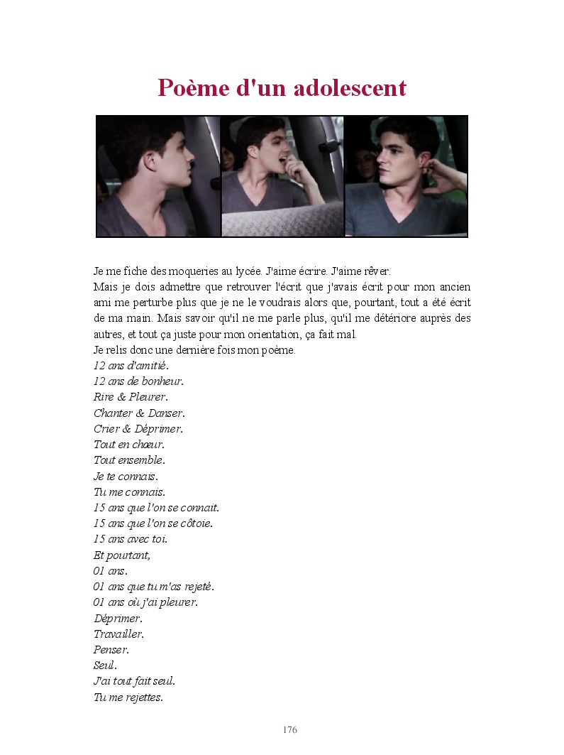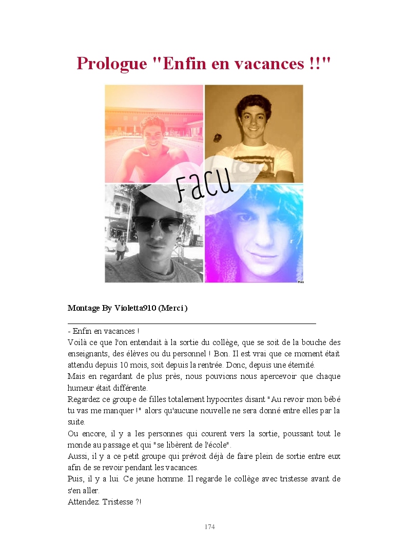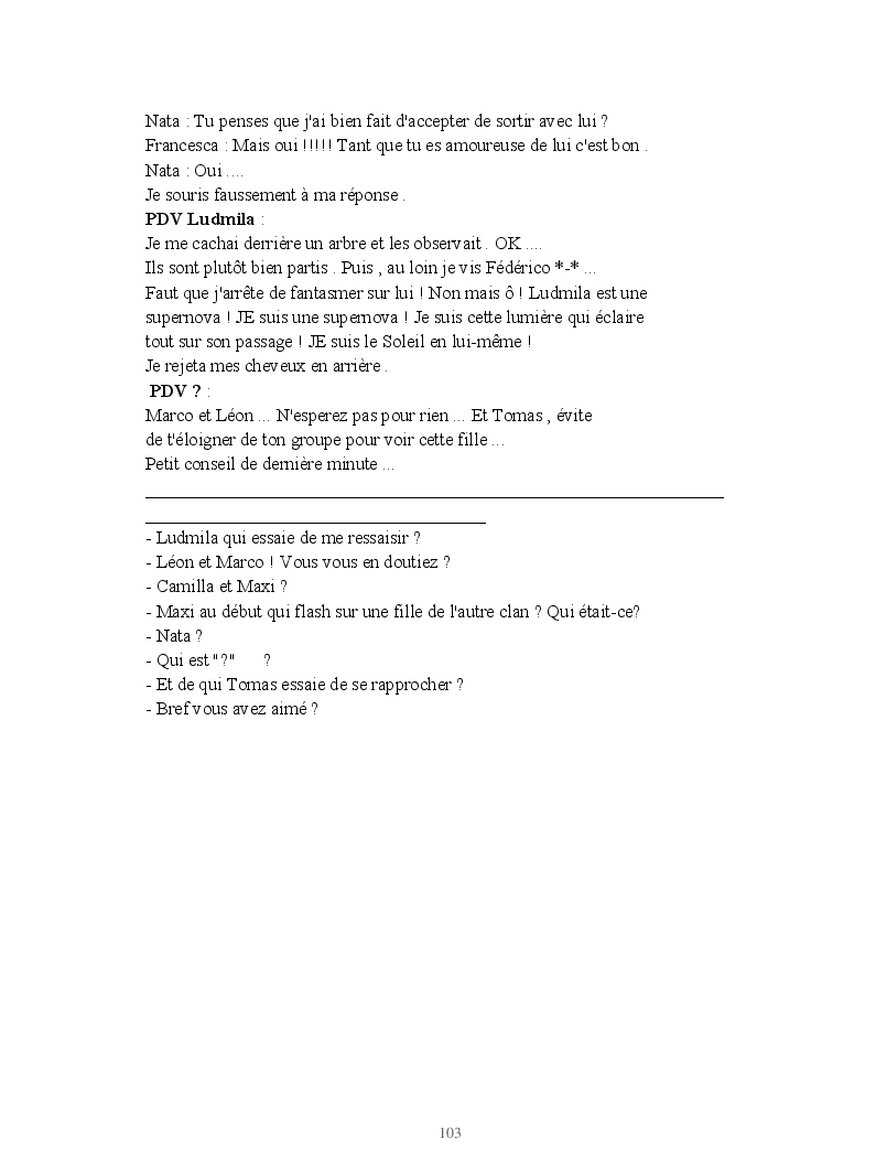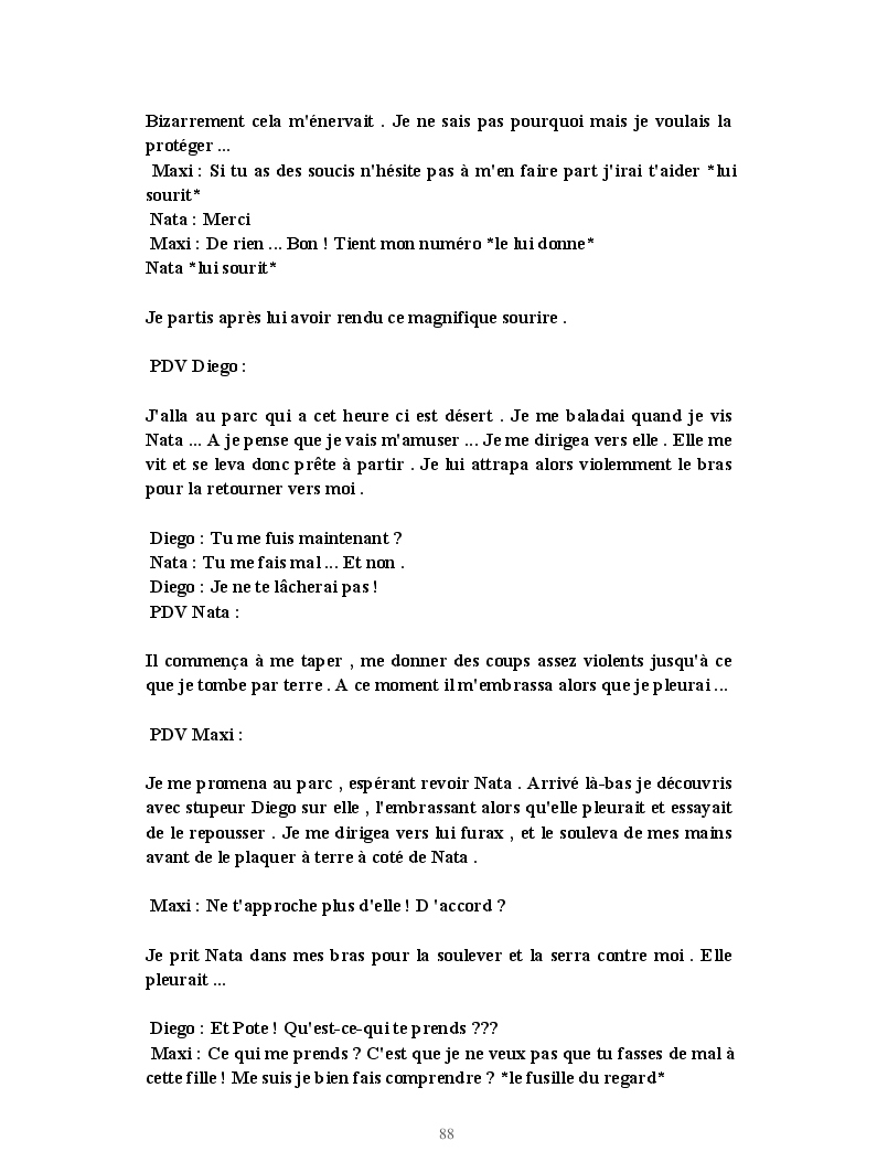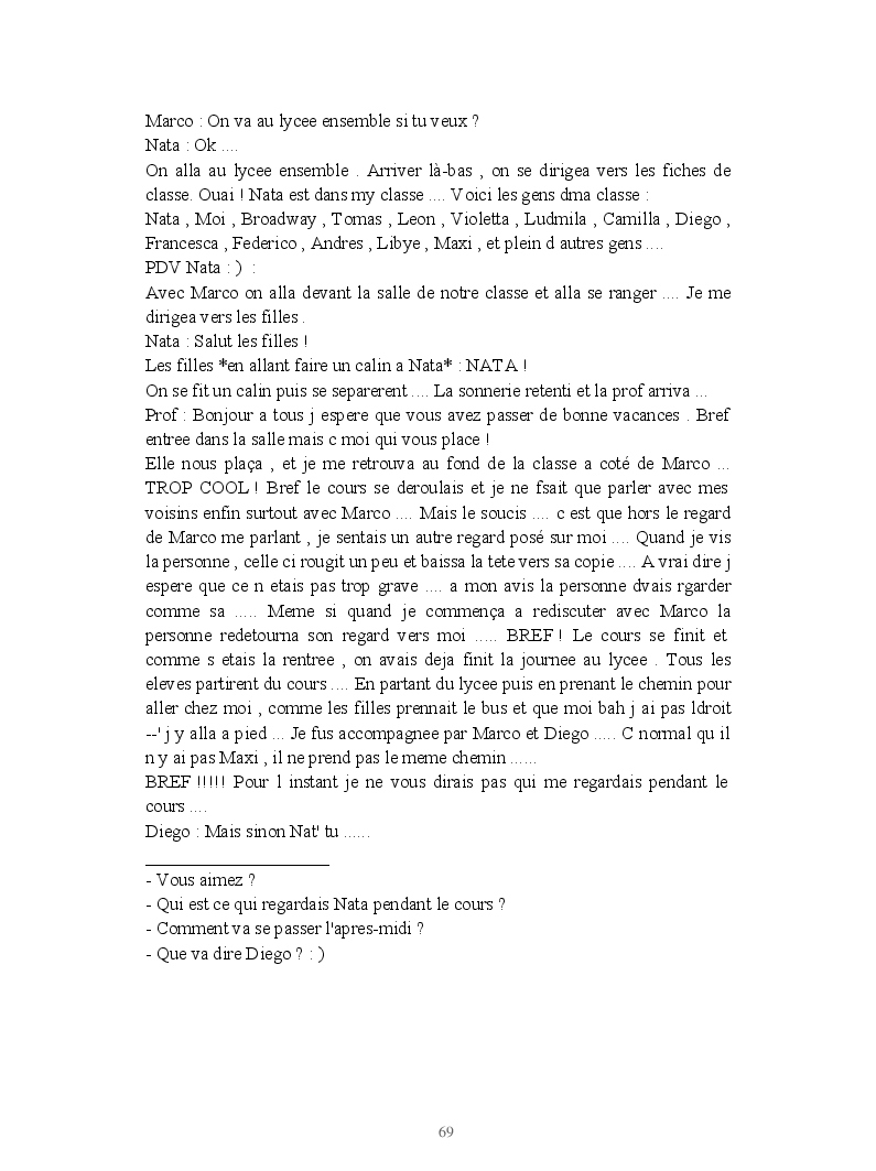 Dans ce blook, je montre mon blog QuieroSonar, qui retrace au final toute ma vie collégienne. Grâce à ce blook, vous pouvez suivre mon parcours et mes passages. Dès fois heureuses, dès fois en détresse, mes histoires montrent le passage dans lequel j'étais au moment de l'écriture. Ce rêve d'écrire un livre en tout cas, prendra peut-être forme en relisant cela. :)