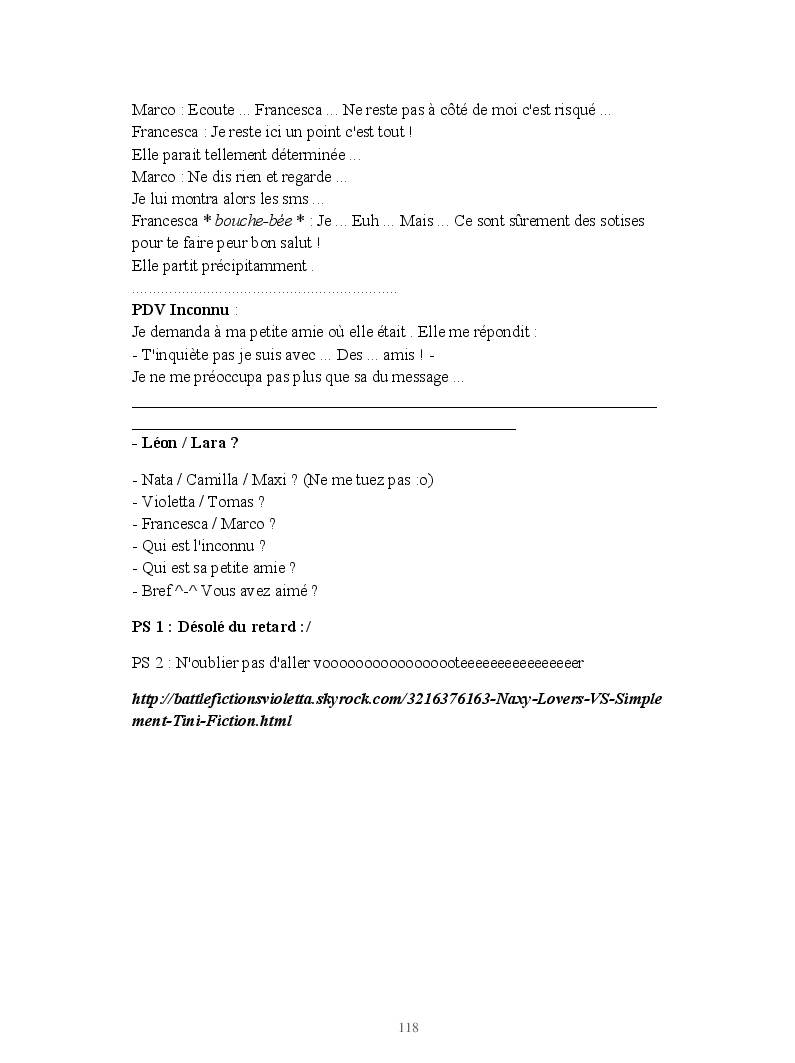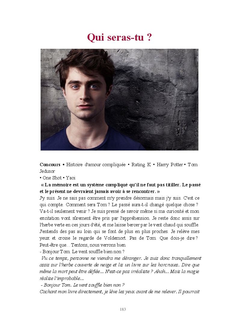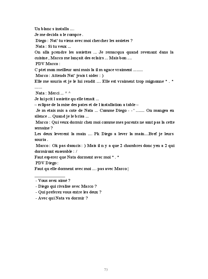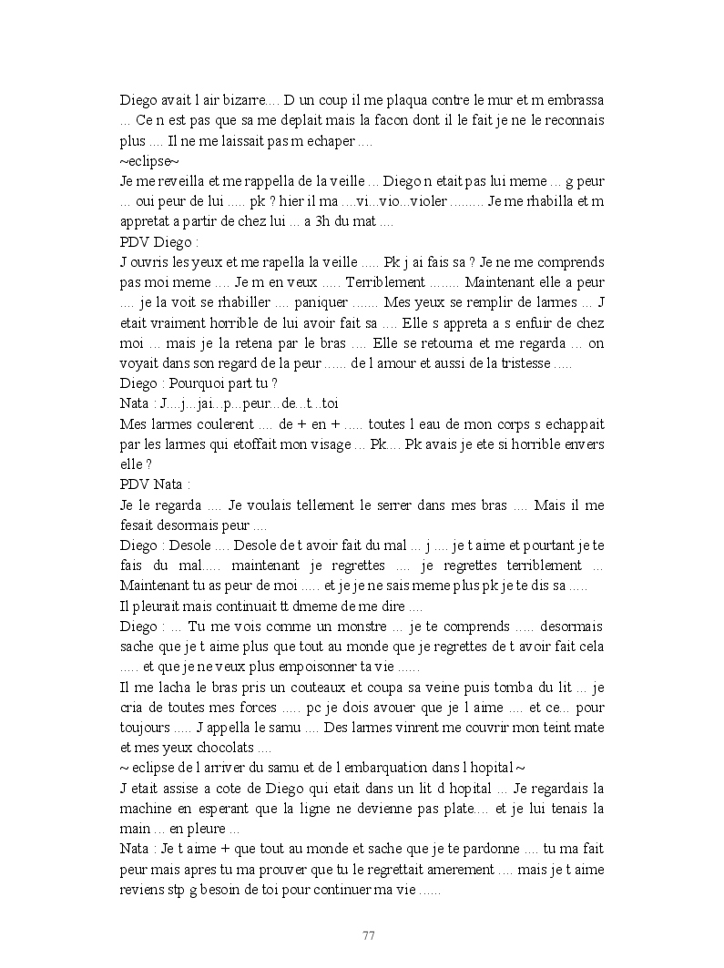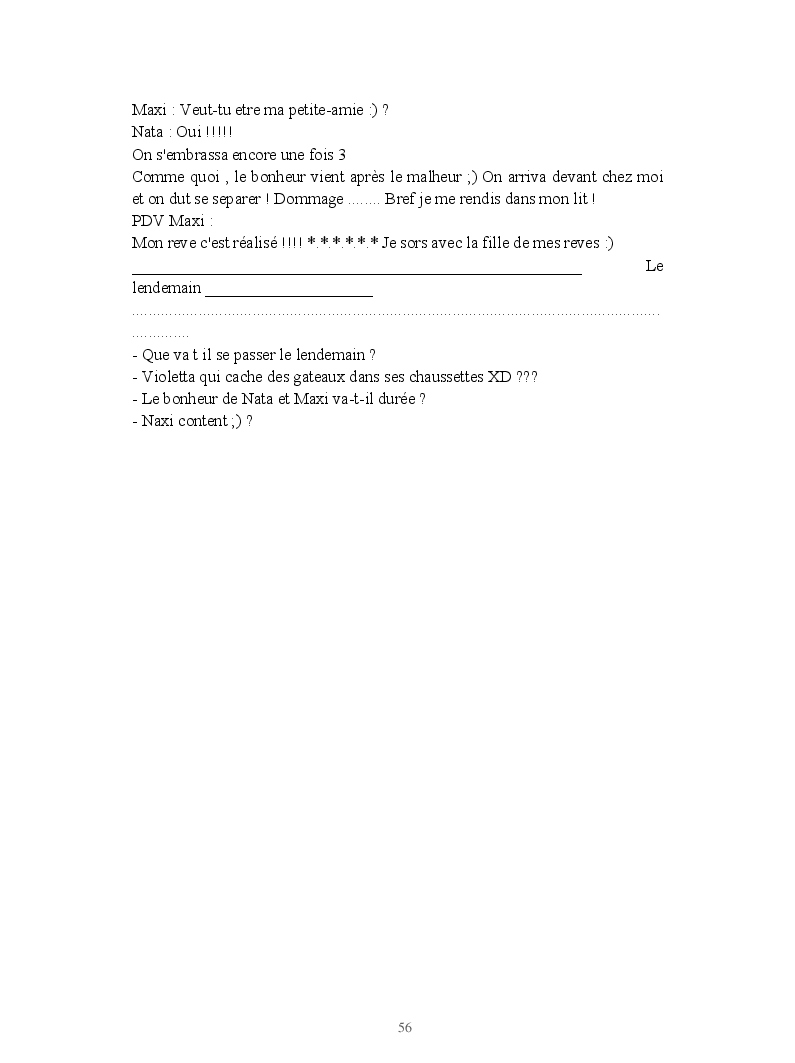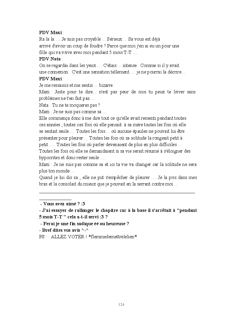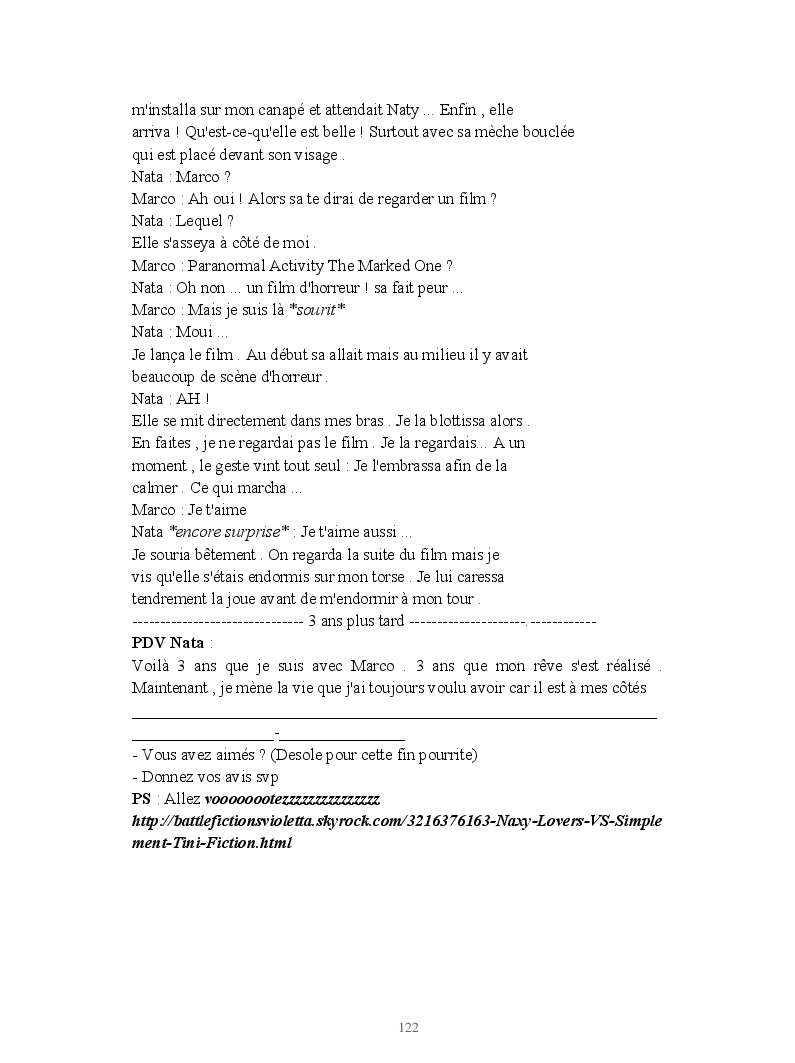 Dans ce blook, je montre mon blog QuieroSonar, qui retrace au final toute ma vie collégienne. Grâce à ce blook, vous pouvez suivre mon parcours et mes passages. Dès fois heureuses, dès fois en détresse, mes histoires montrent le passage dans lequel j'étais au moment de l'écriture. Ce rêve d'écrire un livre en tout cas, prendra peut-être forme en relisant cela. :)