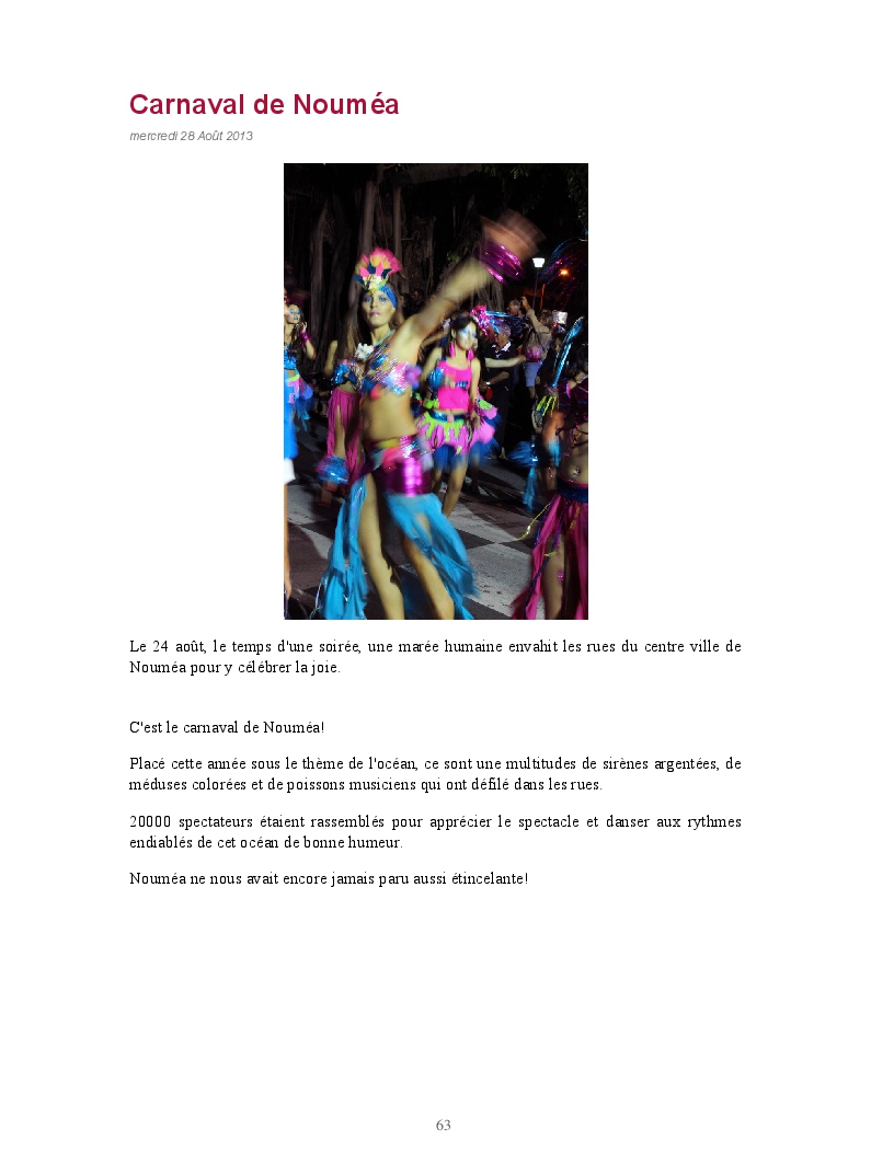 Animé par une envie incessante du voyage, nous avons posées nos valises pour trois ans à Nouméa. Une nouvelle vie s'offre à nous, loin de la famille, ils faut prendre ces repères, apprendre cette culture à la mode "Pacifique".La soif de découverte dans un monde inconnu. Souvent adulé par le grand public, plage de sable blanc, cocotier, nous on toujours fait, à tous rêvé.Un hommage à toute la famille, aux amis...