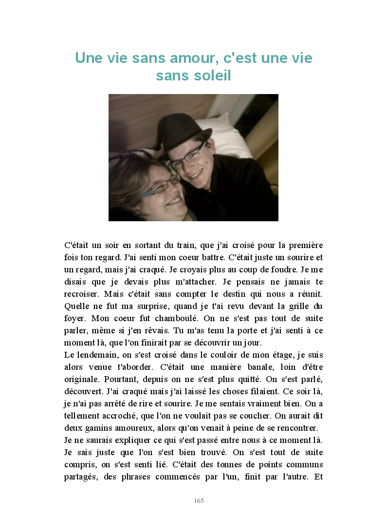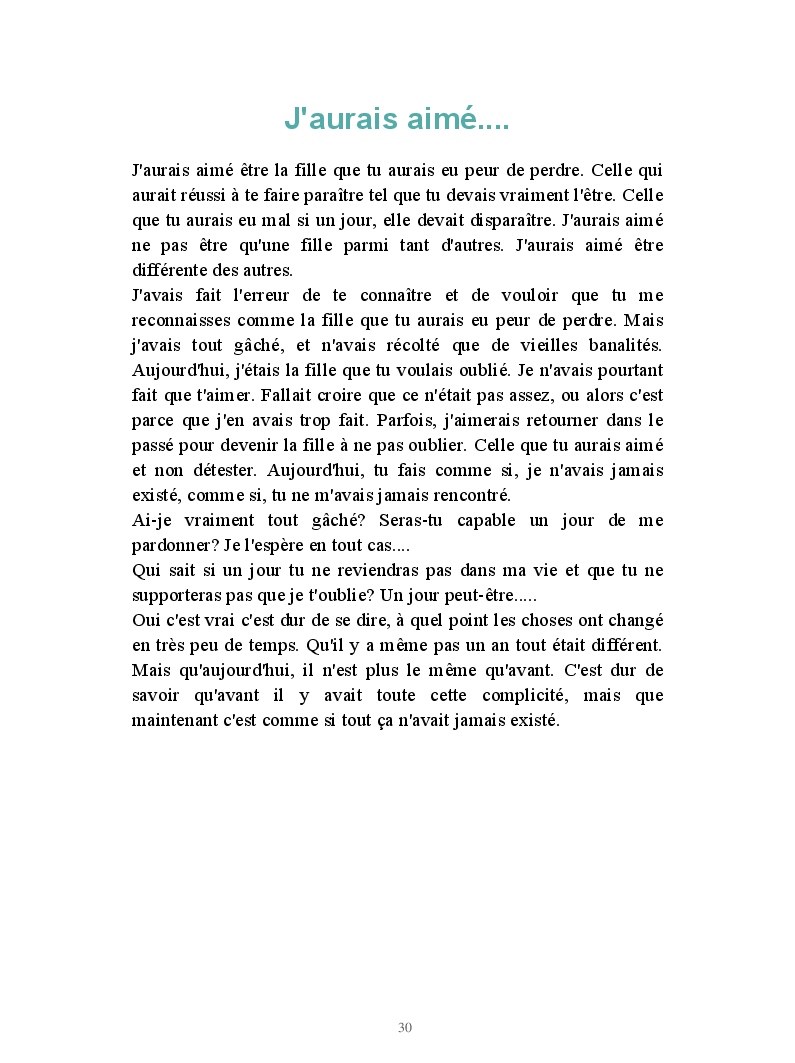 Un livre regroupant mes textes, qu'ils soient bons ou mauvais aux yeux des autres, ce qui compte c'est qu'ils ont un jour été écris parce que j'en avais besoin.