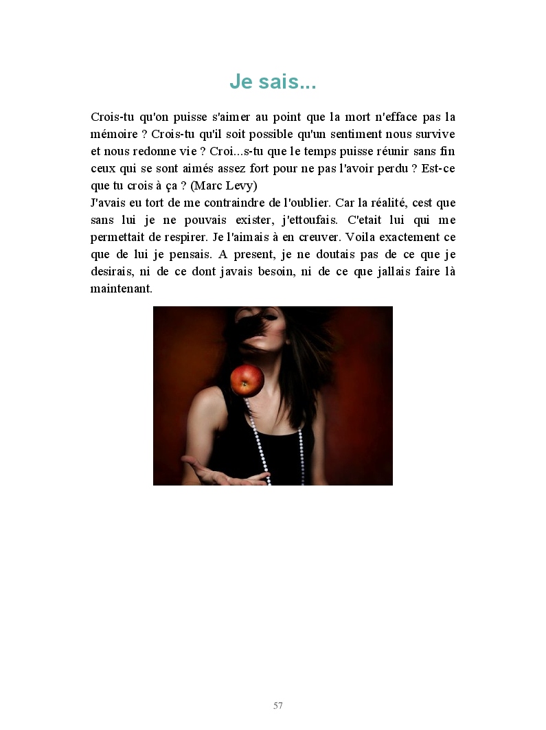 Un livre regroupant mes textes, qu'ils soient bons ou mauvais aux yeux des autres, ce qui compte c'est qu'ils ont un jour été écris parce que j'en avais besoin.