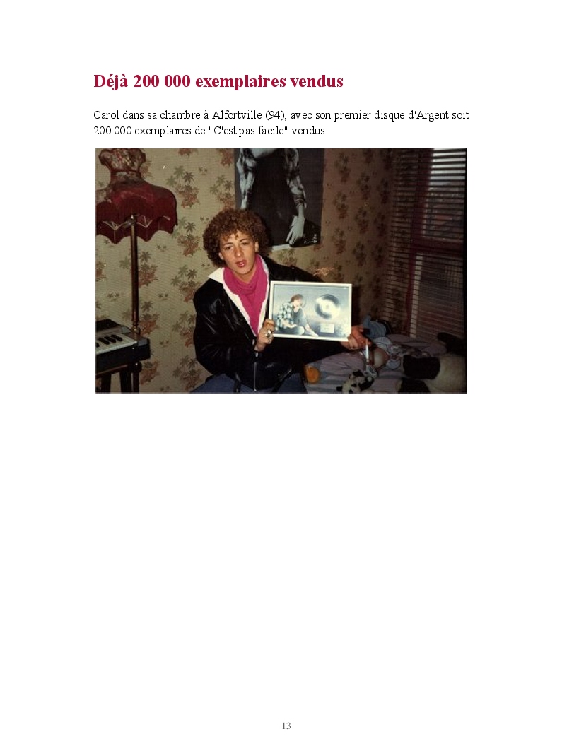 Un jour, en avril 1985, l'animateur d'une radio libre de l'Oise présente Carol à la fameuse Vline Buggy, l'une des grandes dames de la chanson française qui a d'ailleurs travaillé avec Claude François. Vline Buggy est séduite par la voix exceptionnelle de Carol. Longuement, lentement, elles se mettent toutes les deux au travail, pour peaufiner la chanson idéale que nul autre que Carol ne pourrait interpréter. Le résultat donne "C'est pas facile" en février 86. Une émouvante chanson écrite après la mort accidentelle de son frère "Arnauld". Tendresse, pudeur et gouaille s'allient pour donner l'une des révélations du TOP 50.