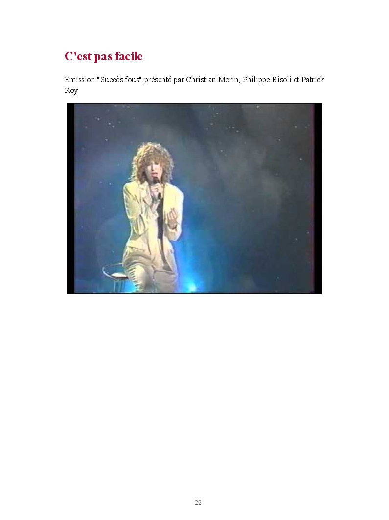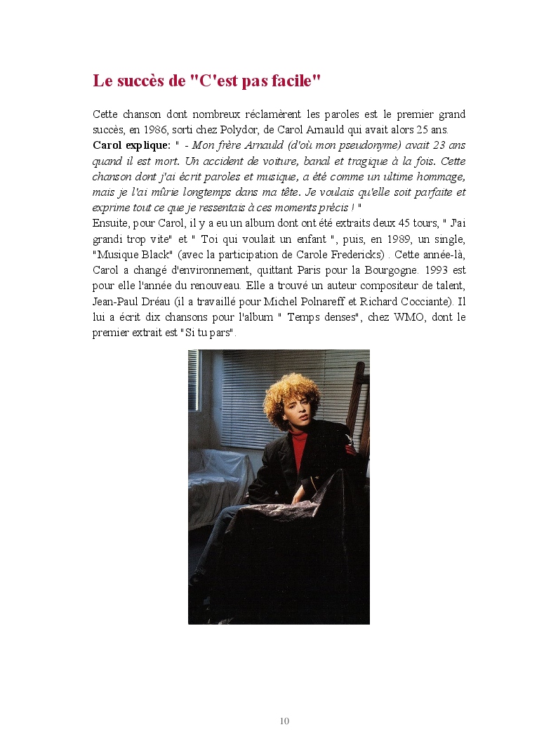 Un jour, en avril 1985, l'animateur d'une radio libre de l'Oise présente Carol à la fameuse Vline Buggy, l'une des grandes dames de la chanson française qui a d'ailleurs travaillé avec Claude François. Vline Buggy est séduite par la voix exceptionnelle de Carol. Longuement, lentement, elles se mettent toutes les deux au travail, pour peaufiner la chanson idéale que nul autre que Carol ne pourrait interpréter. Le résultat donne "C'est pas facile" en février 86. Une émouvante chanson écrite après la mort accidentelle de son frère "Arnauld". Tendresse, pudeur et gouaille s'allient pour donner l'une des révélations du TOP 50.