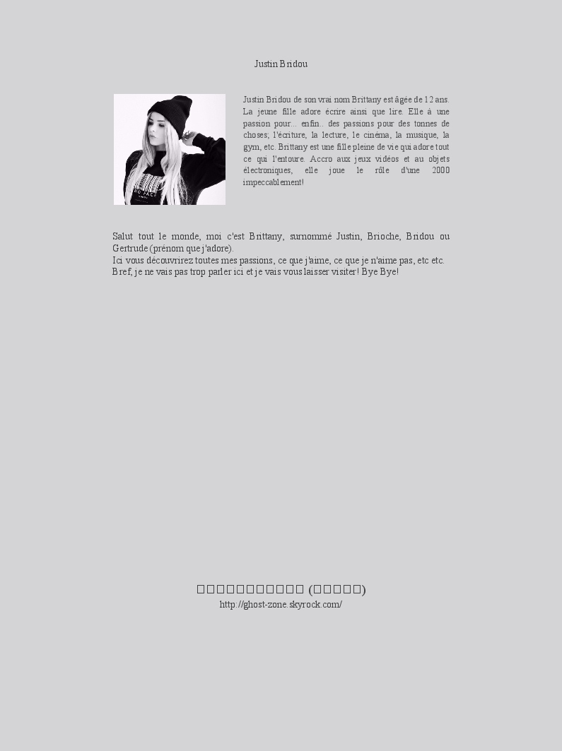 Salut tout le monde, moi c'est Brittany, surnommé Justin, Brioche, Bridou ou Gertrude (prénom que j'adore).