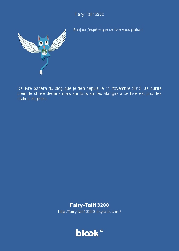Fairy-Tail13200 made the blook of their their blog Skyrock ! Support their creativity by buying their blook or create your own now on BlookUp!