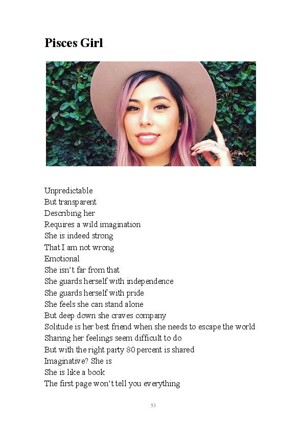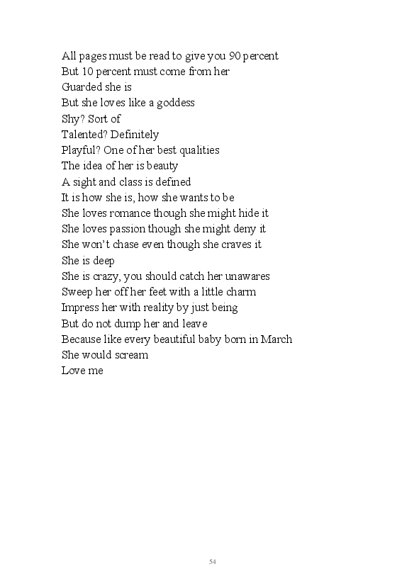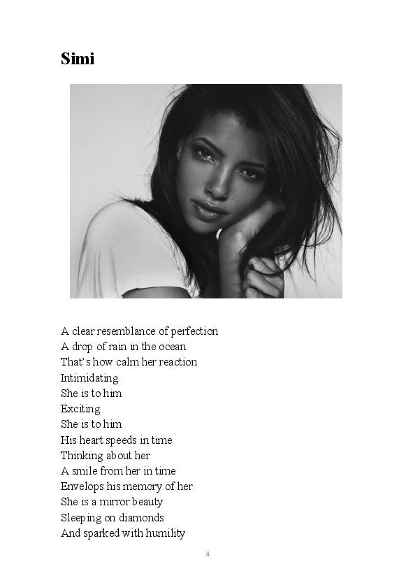 A collection of poems that describe, romance, love, passion, hope and pain.