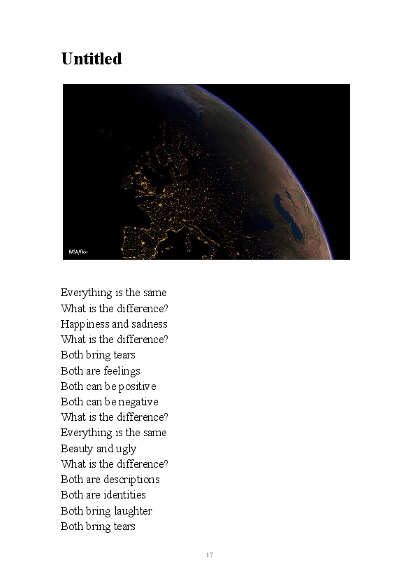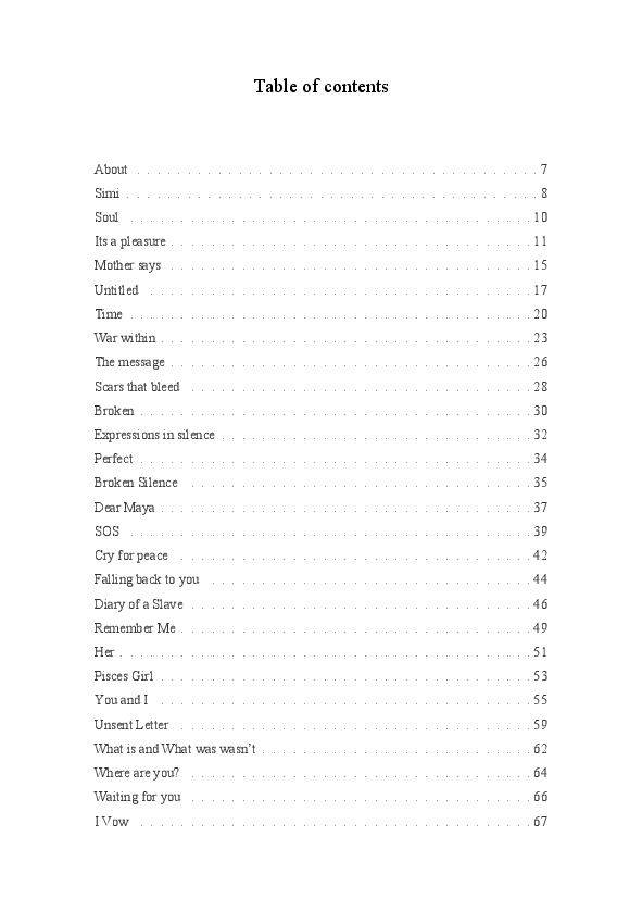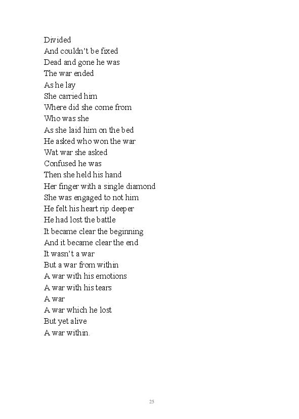 A collection of poems that describe, romance, love, passion, hope and pain.