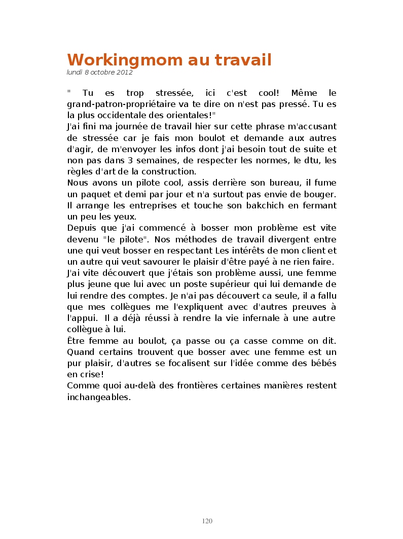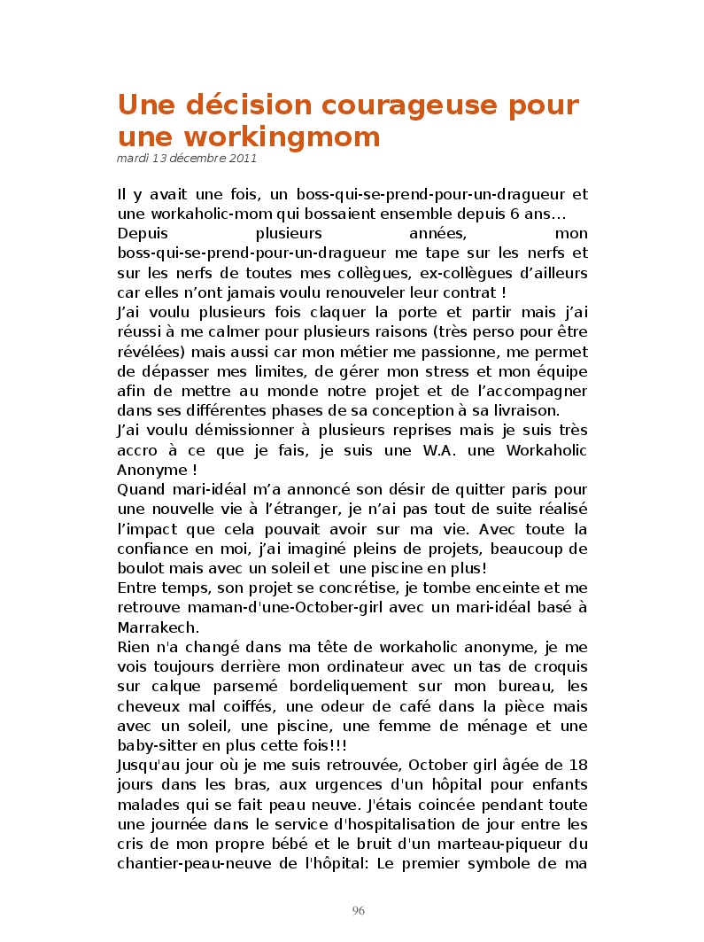 Du fond de ma crise existentielle de working mother: entre l'idée du retour au boulot, l'inscription scolaire de mon fils en maternelle, les papiers administratifs, la gestion de la garde de mon fils après l'école et mon paquet de clopes, j'ai voulu partager mes pensées ainsi que mes journées!