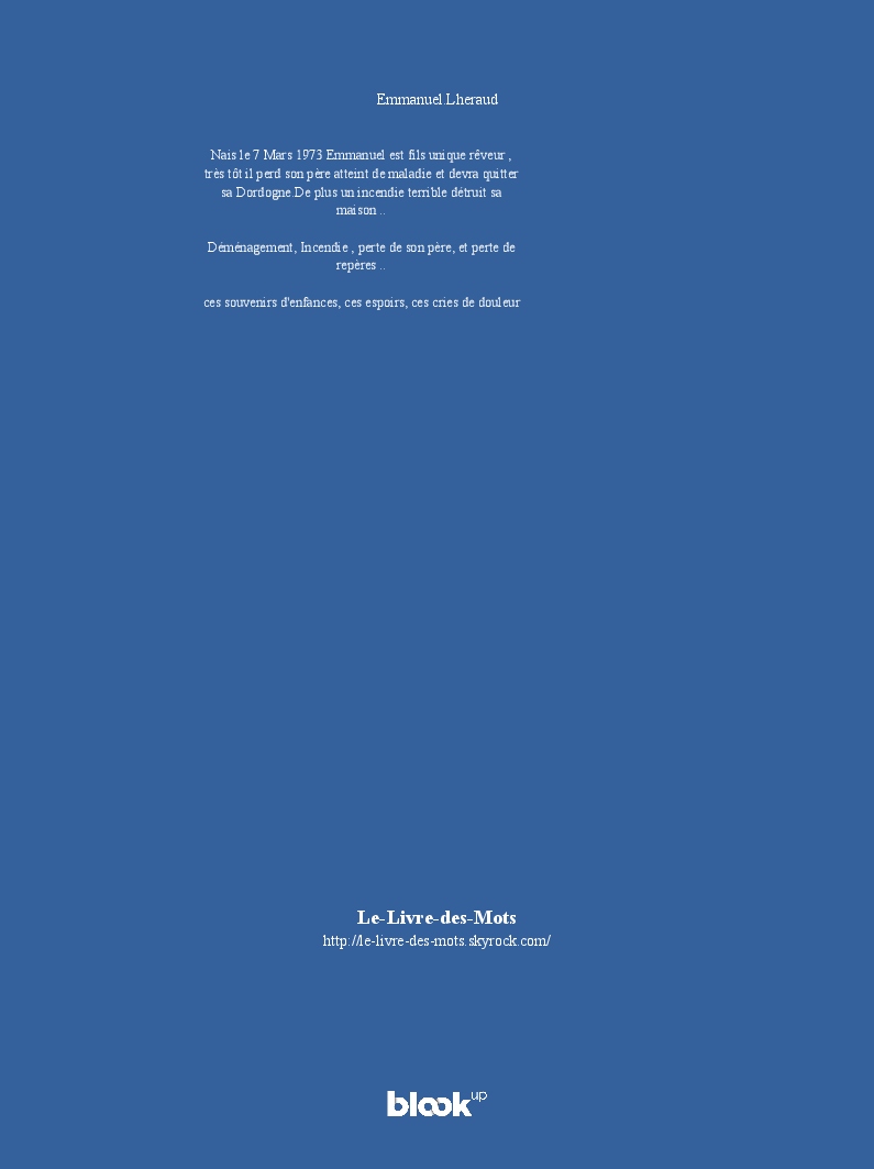 Emmanuel.Lheraud made the blook of their their blog Skyrock ! Support their creativity by buying their blook or create your own now on BlookUp!