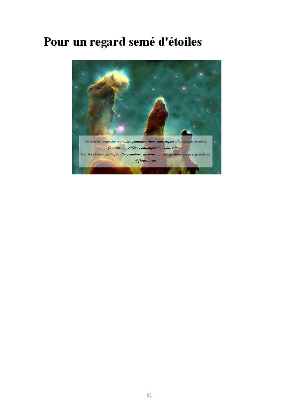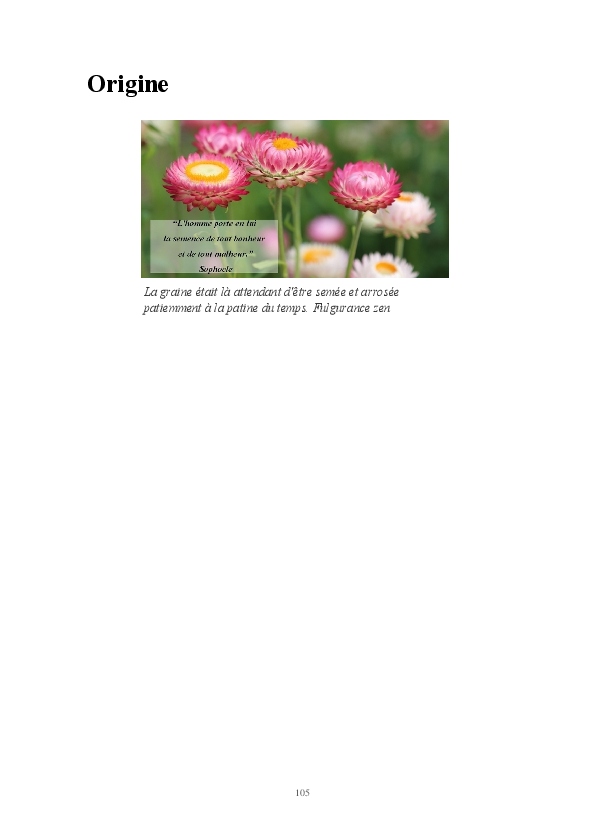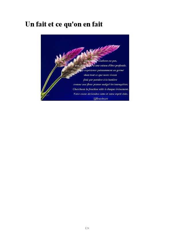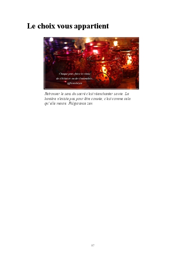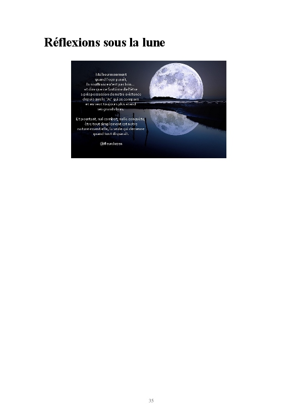 Cette sélection d'articles donne un aperçu de quelques années à l'écoute de l'essentiel, des maximes imagées qui porte à méditer et se souvenir que là, au fond de nous, tout est révélé.