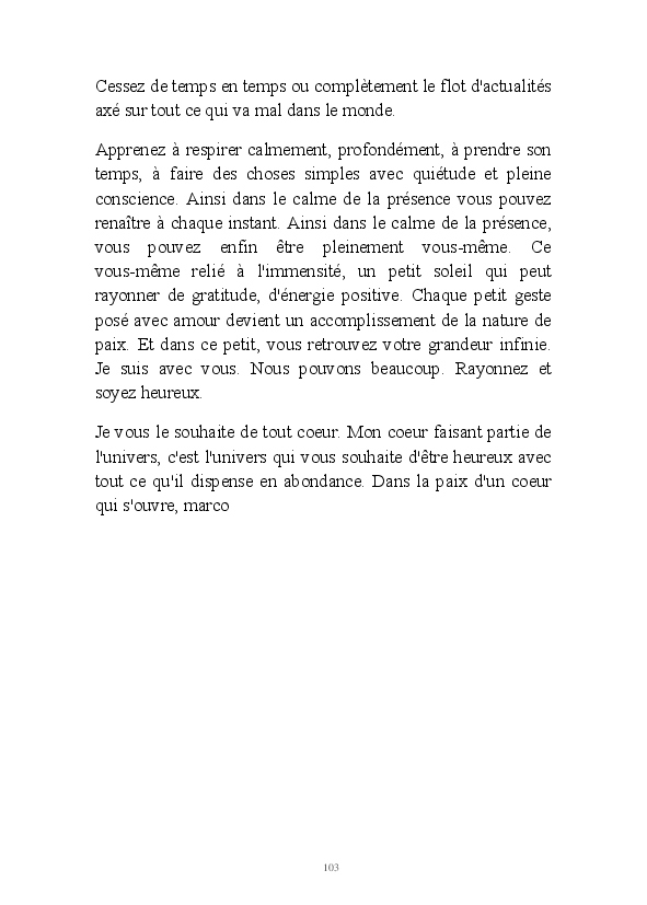 Dans la paix du coeur, marco, rédacteur de fleurduzen