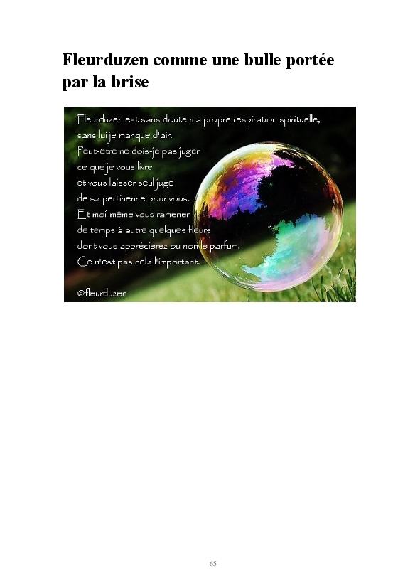 Cet e-book est une entrée en matière, il égrène les différents articles écrits de juin 2012 à décembre 2014 sur le blog fleurduzen.