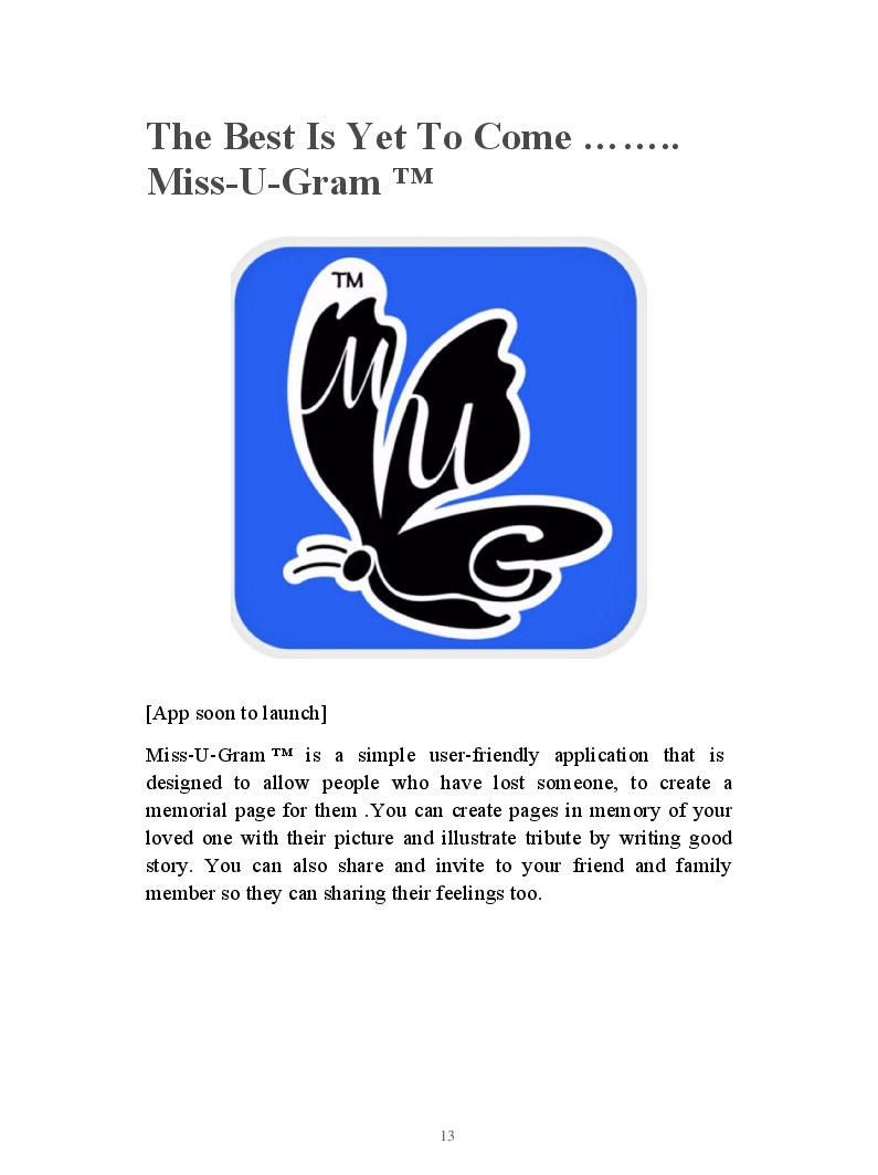 This amazing app [Miss-U-Gram] has passed through many building blocks and with your support we can make memories last forever!