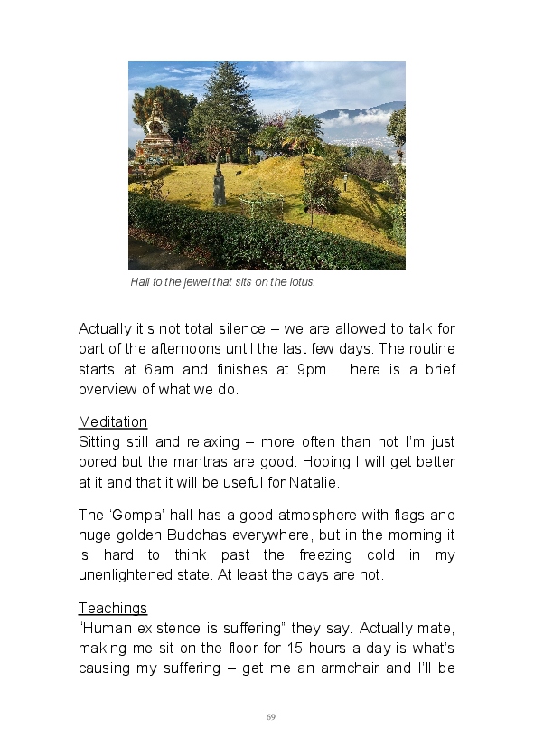 From the opulence of the Emirates to the cockroaches of Vietnam, witness a young couple's wide-eyed amazement as they venture east with no idea what to expect. Share the boredom of monastery life in Nepal, the euphoria of accidental opium ingestion in Laos, a motorbike crash, a feral dog attack, and thousands of kilometres across 10 countries by train, bus, plane, and foot!
