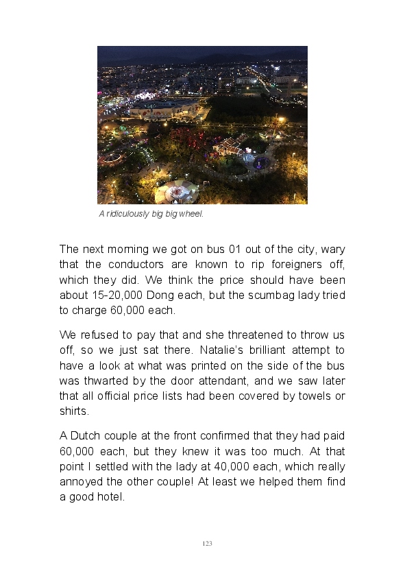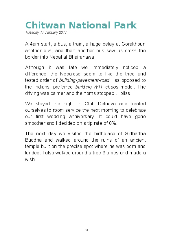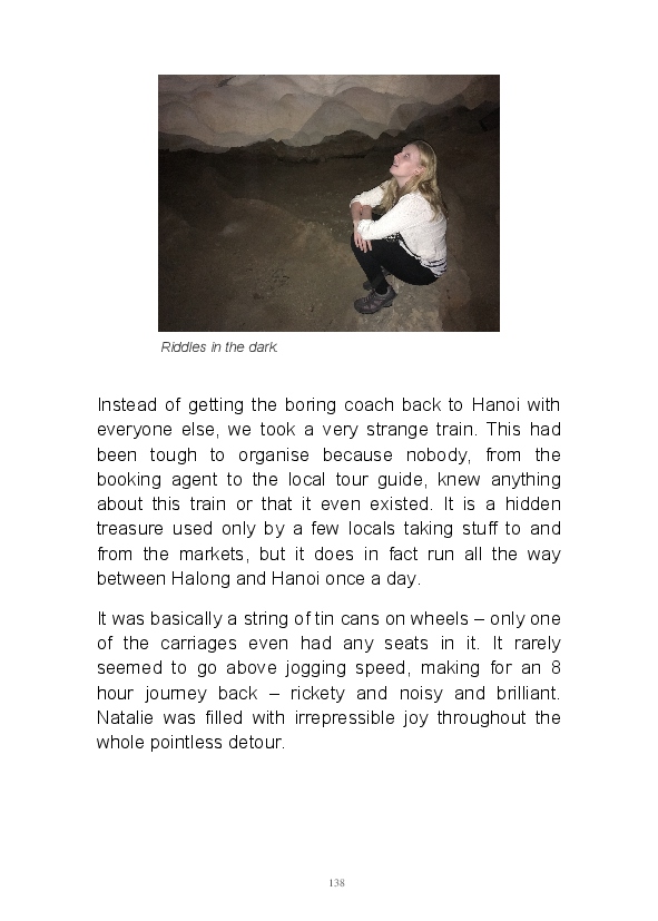 From the opulence of the Emirates to the cockroaches of Vietnam, witness a young couple's wide-eyed amazement as they venture east with no idea what to expect. Share the boredom of monastery life in Nepal, the euphoria of accidental opium ingestion in Laos, a motorbike crash, a feral dog attack, and thousands of kilometres across 10 countries by train, bus, plane, and foot!