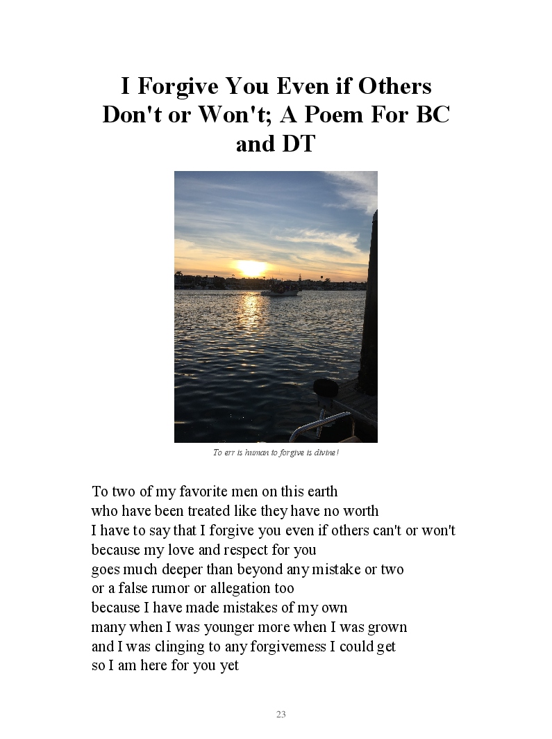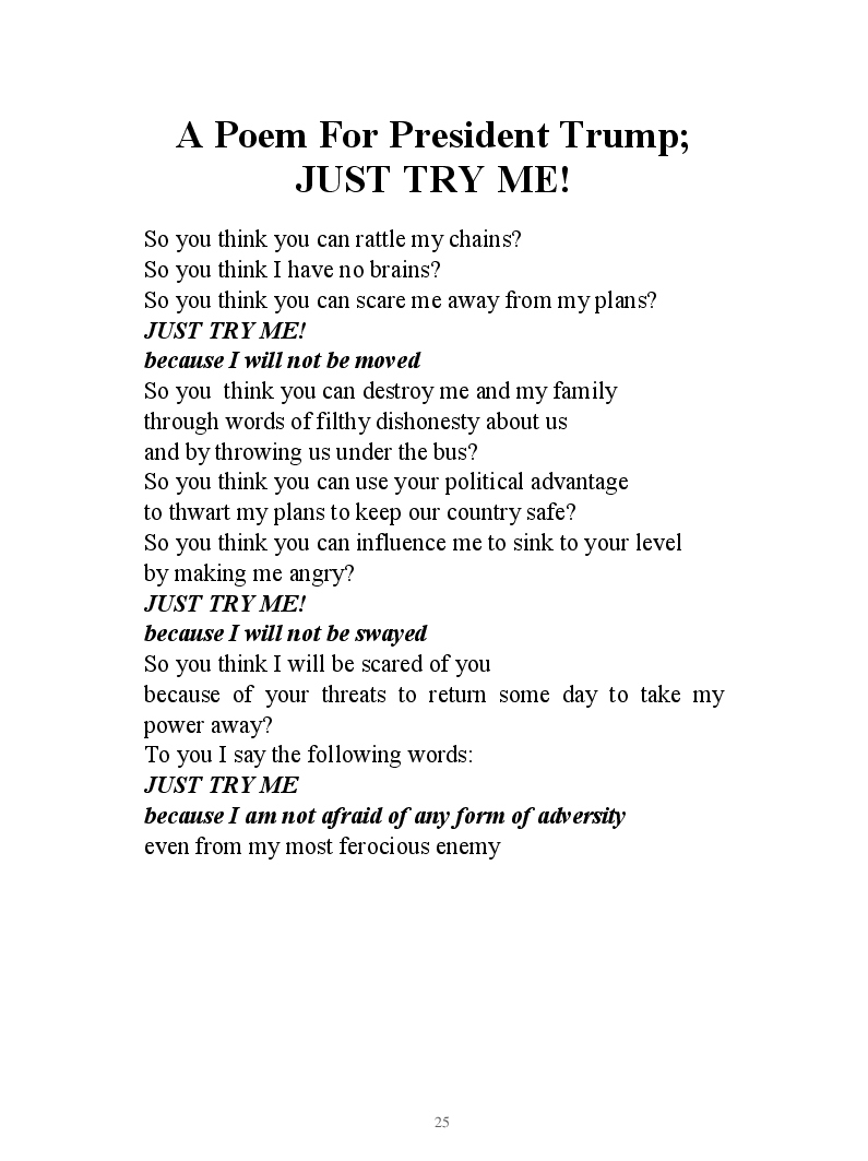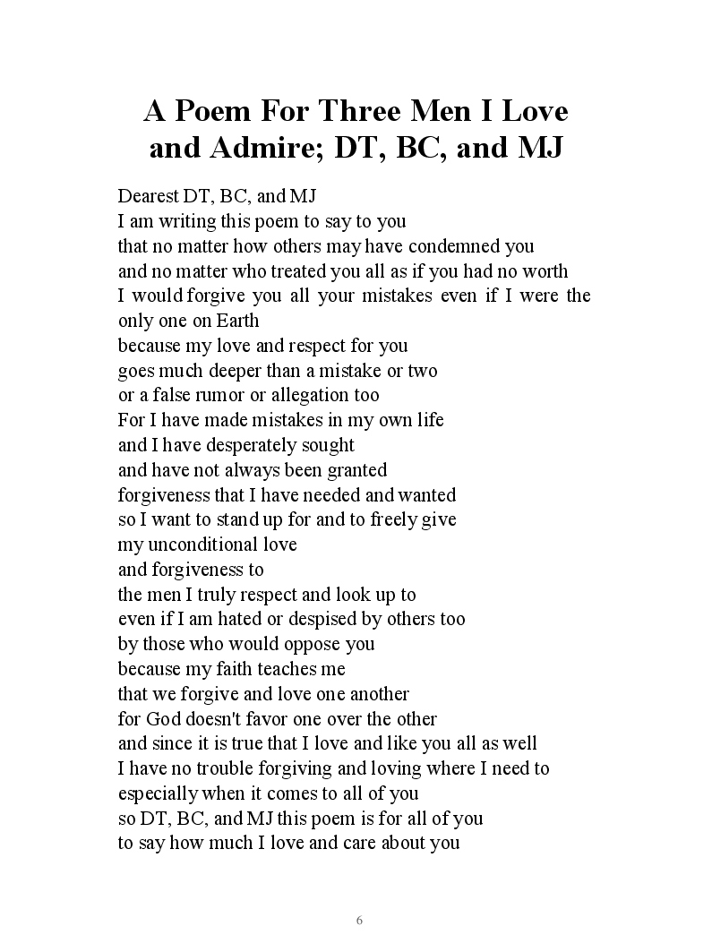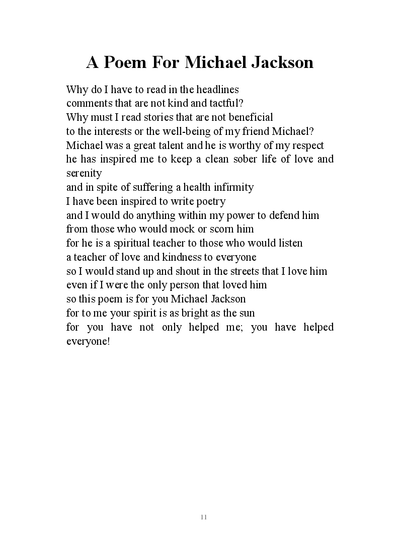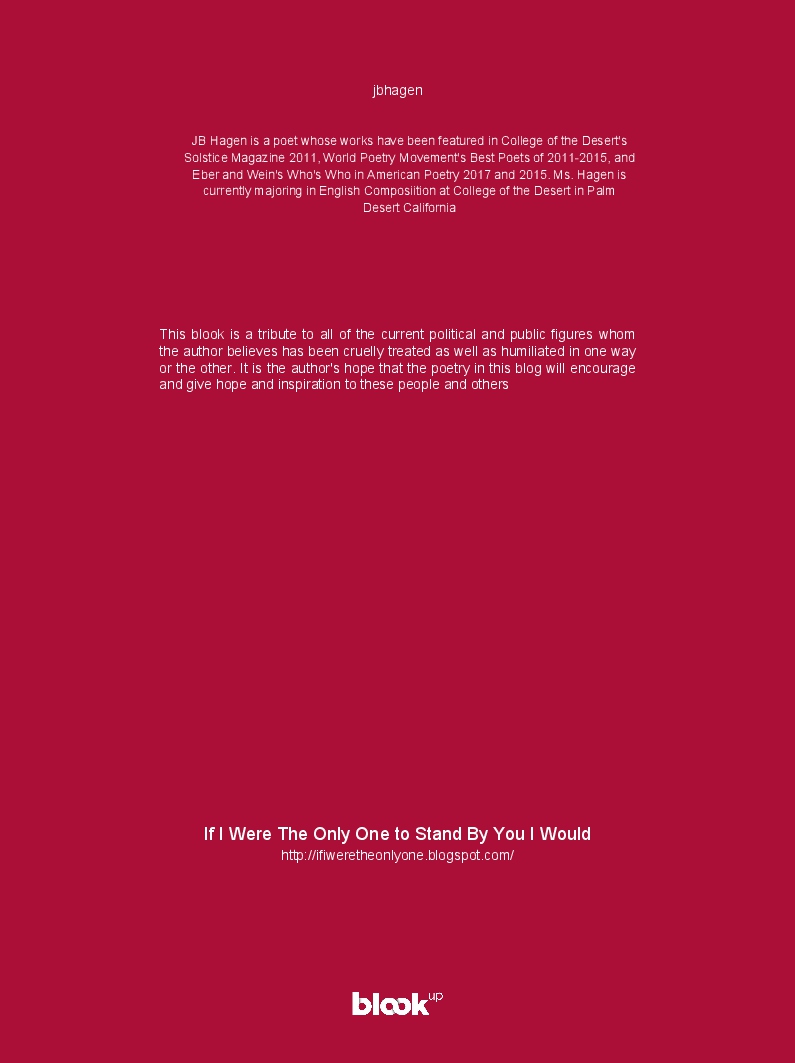 This blook is a tribute to all of the current political and public figures whom the author believes has been cruelly treated as well as humiliated in one way or the other. It is the author's hope that the poetry in this blog will encourage and give hope and inspiration to these people and others