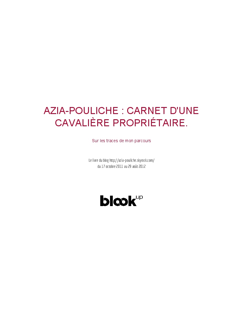 azia-pouliche a fait le livre de son blog Skyrock ! Soutenez sa créativité en achetant son blook ou créez le vôtre dès maintenant sur BlookUp !