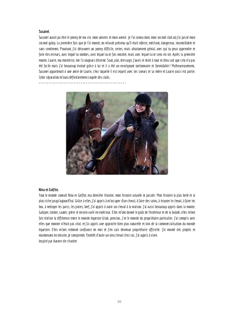 En 2012, ma vie a changé. C'était comme un court-circuit inattendu qui m'a proposé dans un monde incroyable, le monde de l'équitation. Nina et Golfite sont devenues mes piliers, je vous raconte mon histoire.