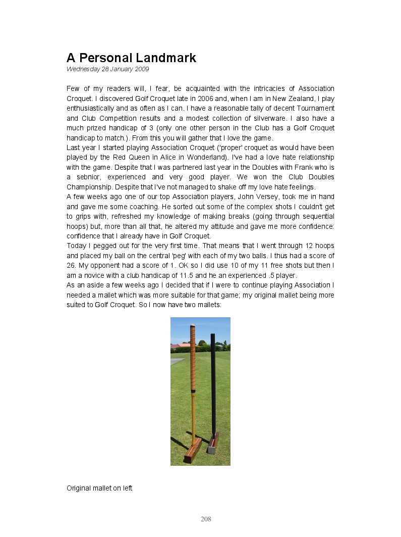 My fourth visit to New Zealand with a visit from Kate Truby and a visit to the Crashleys in Gisborne and my first Croquet Vets and Nationals. Four years previously I could never have dreamt what a wonderful life was awaiting me with The Family in New Zealand. Nor could I have imagined that this life was only in its infancy. Thank you Wendy for your 'ultimatum'.