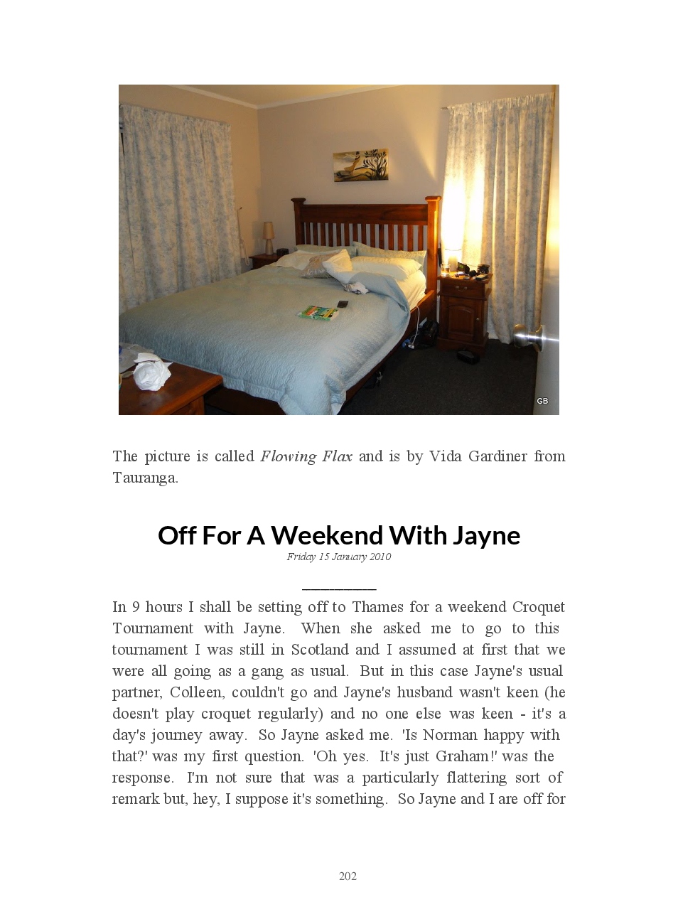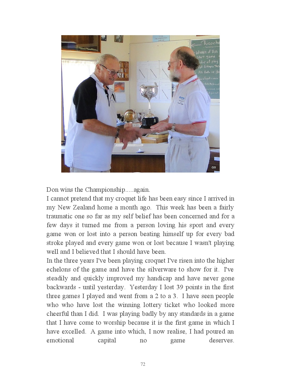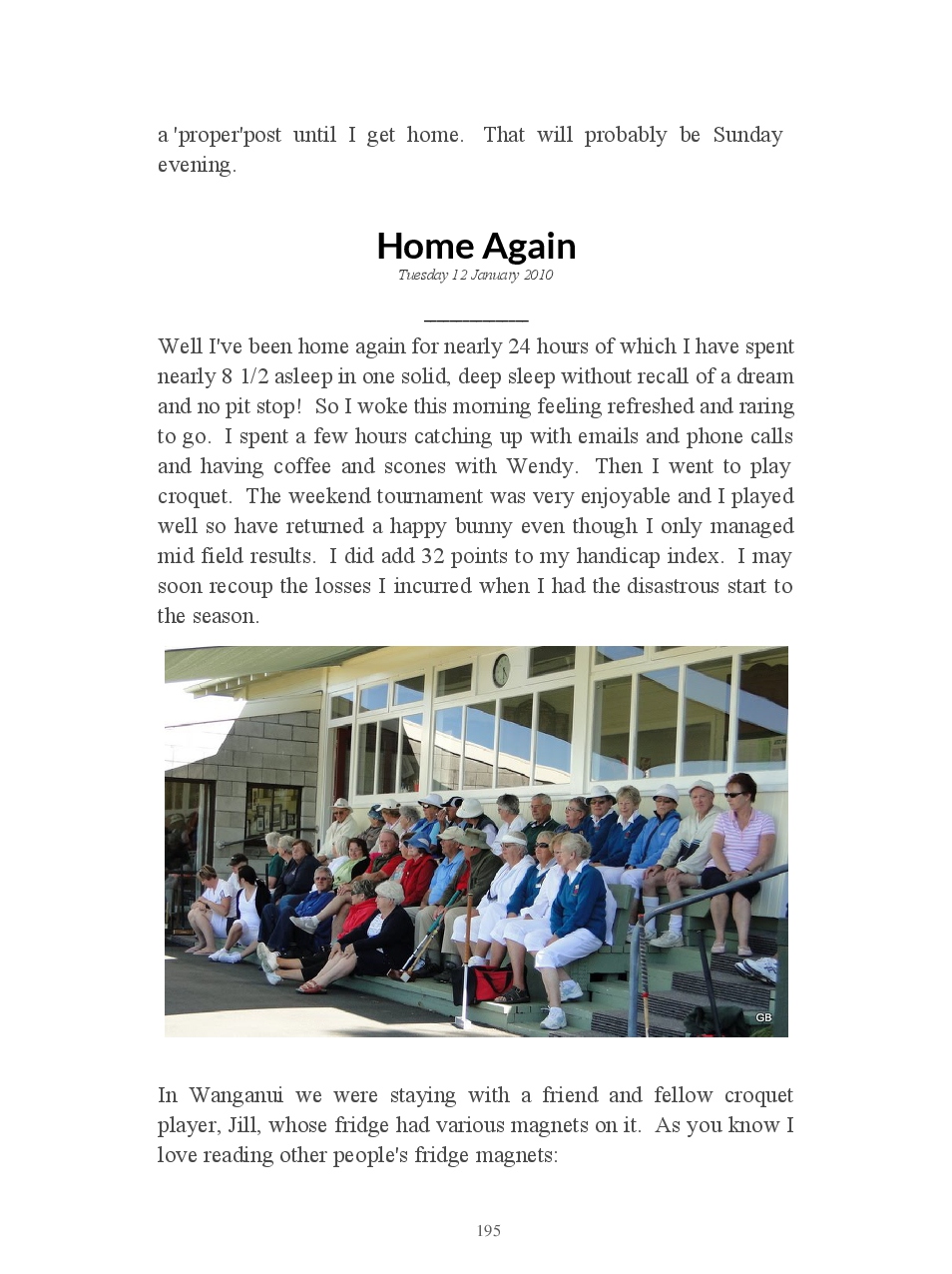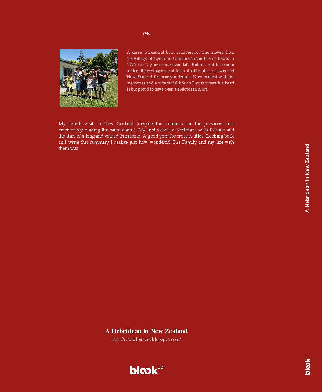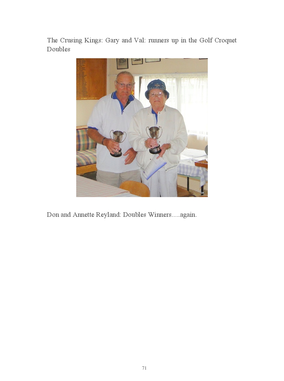 My fourth visit to New Zealand (despite the volumes for the previous visit erroneously making the same claim). My first safari to Northland with Pauline and the start of a long and valued friendship. A good year for croquet titles. Looking back as I write this summary I realise just how wonderful The Family and my life with them was.