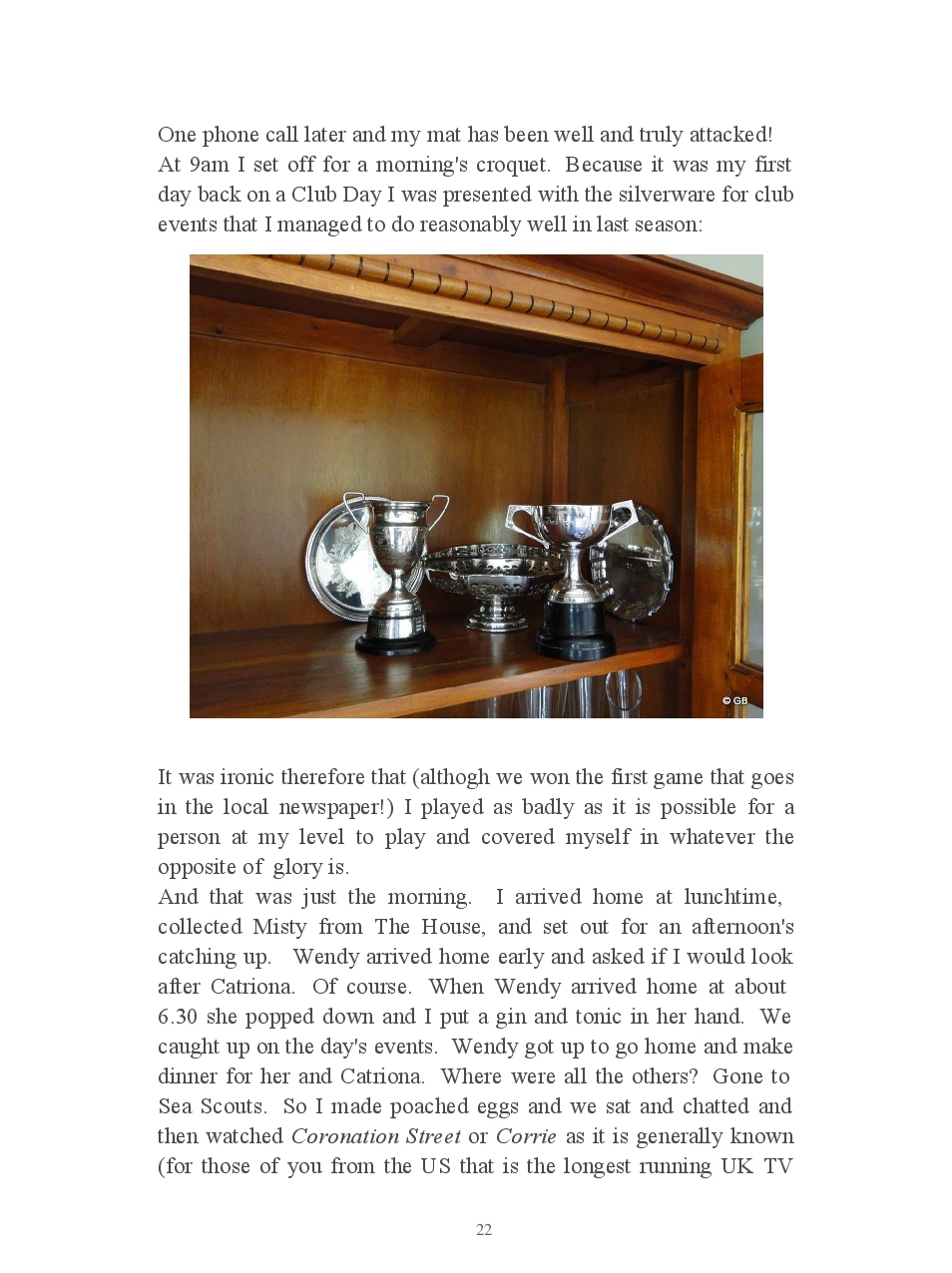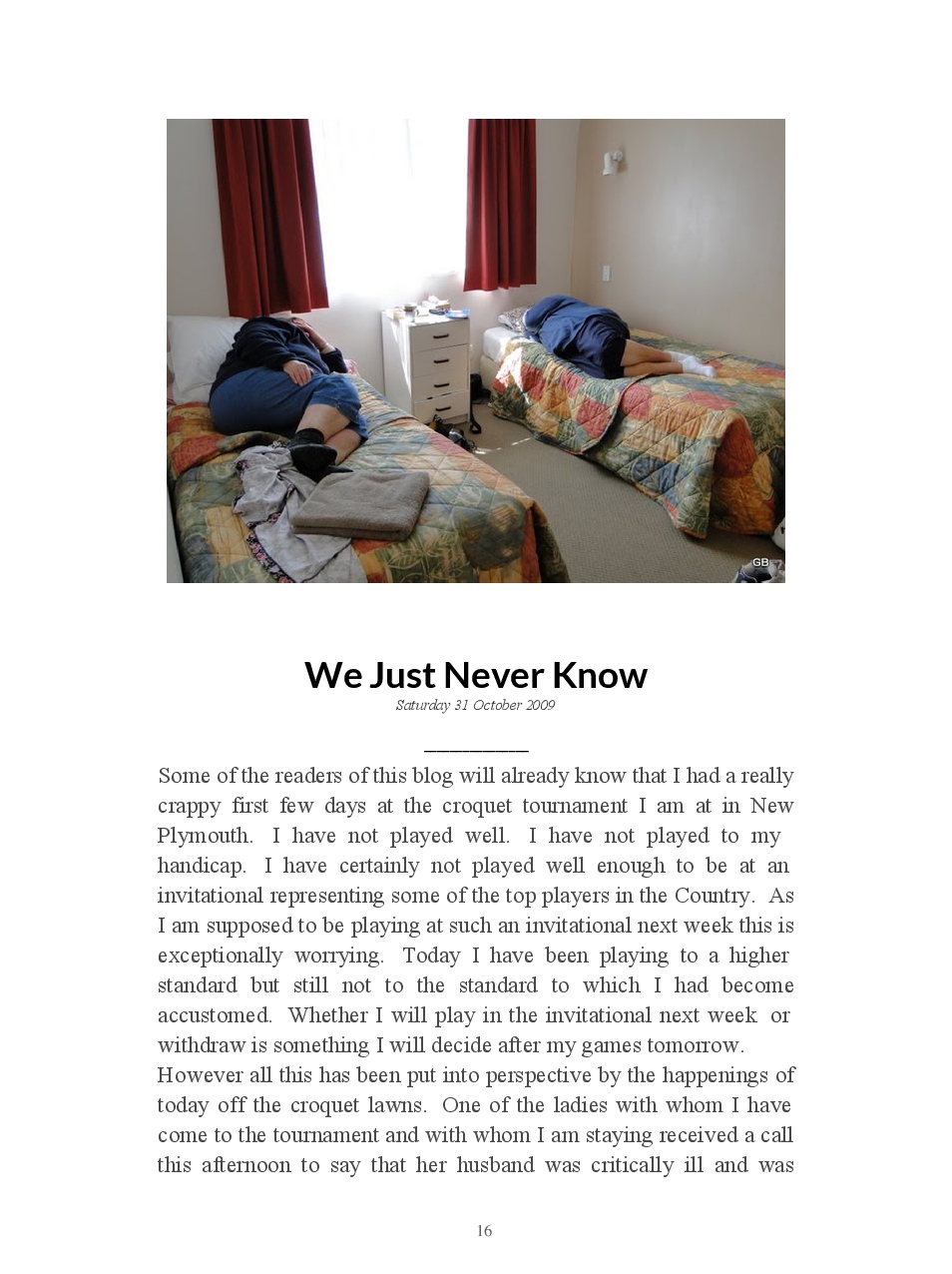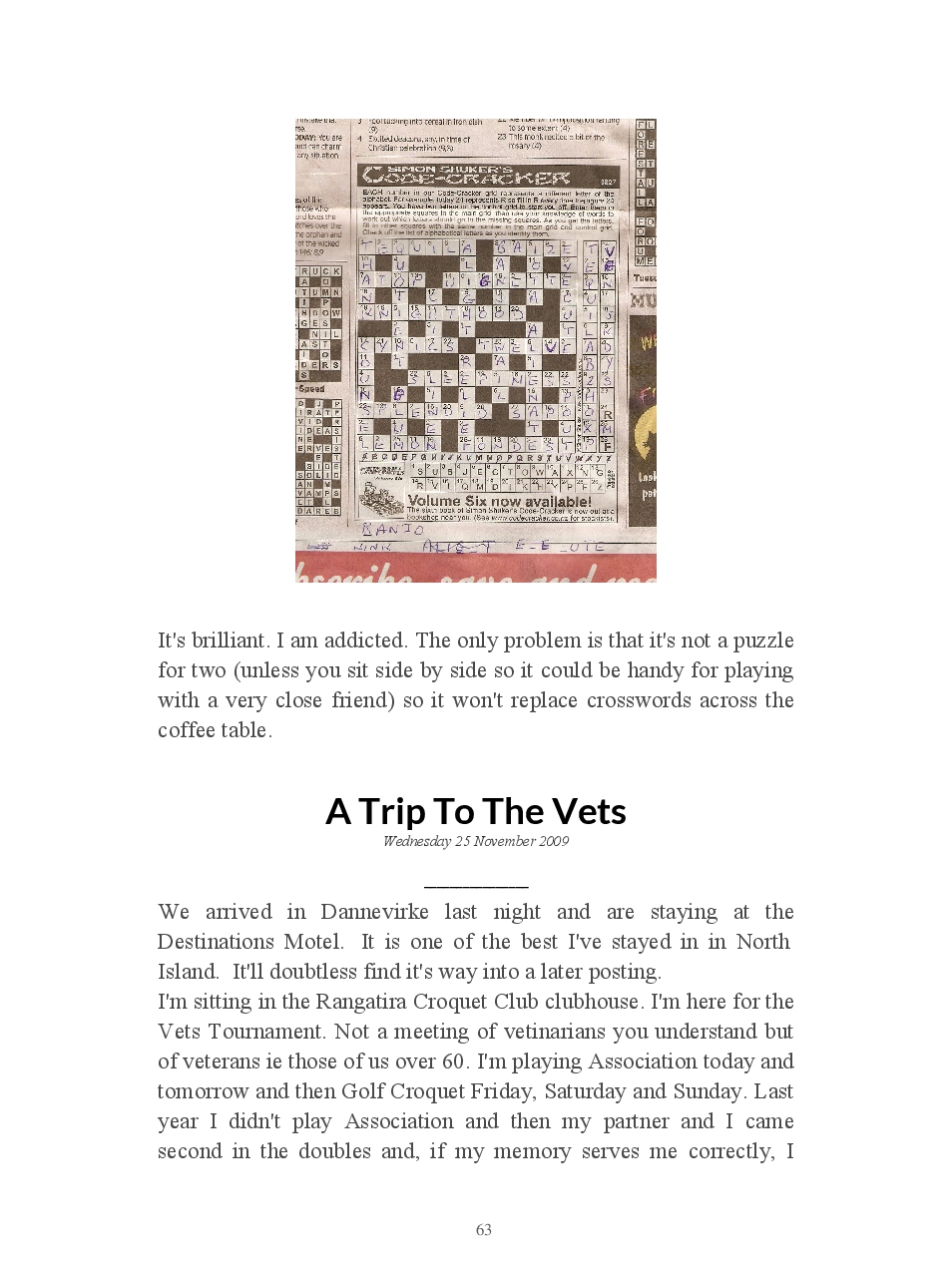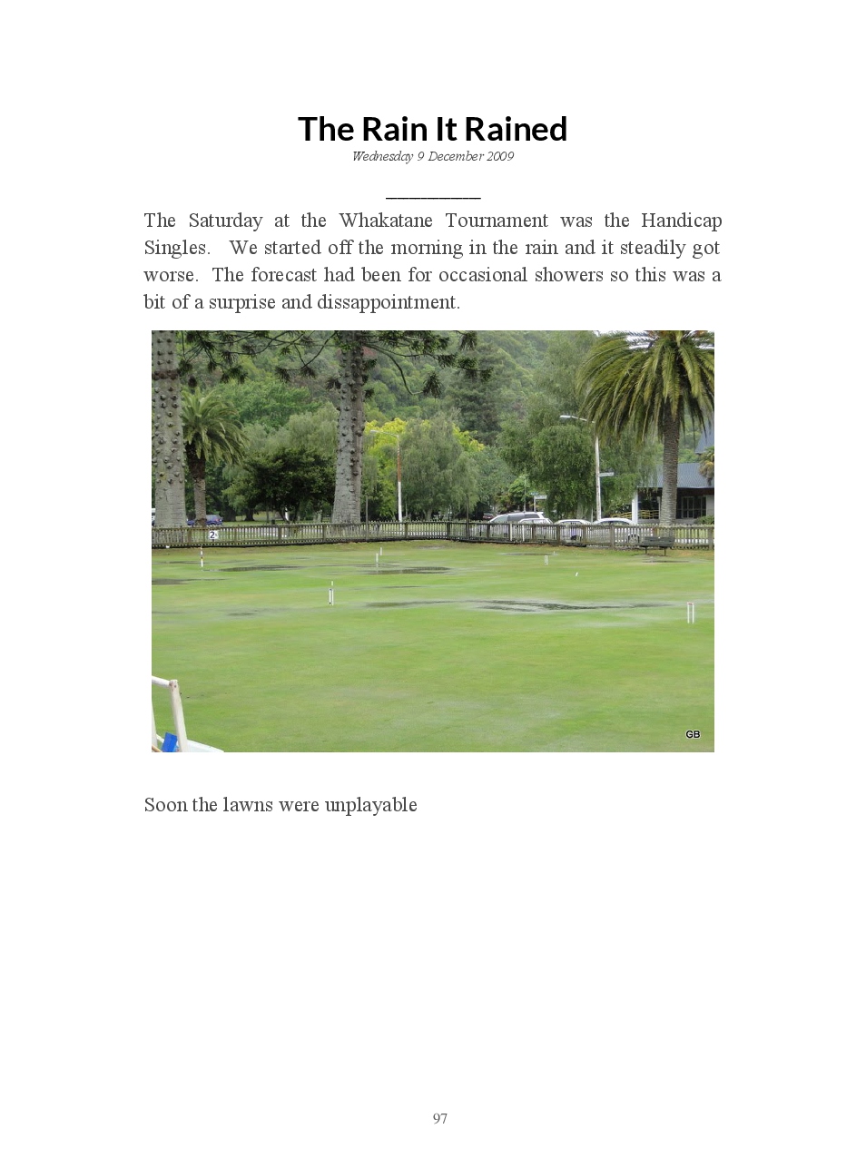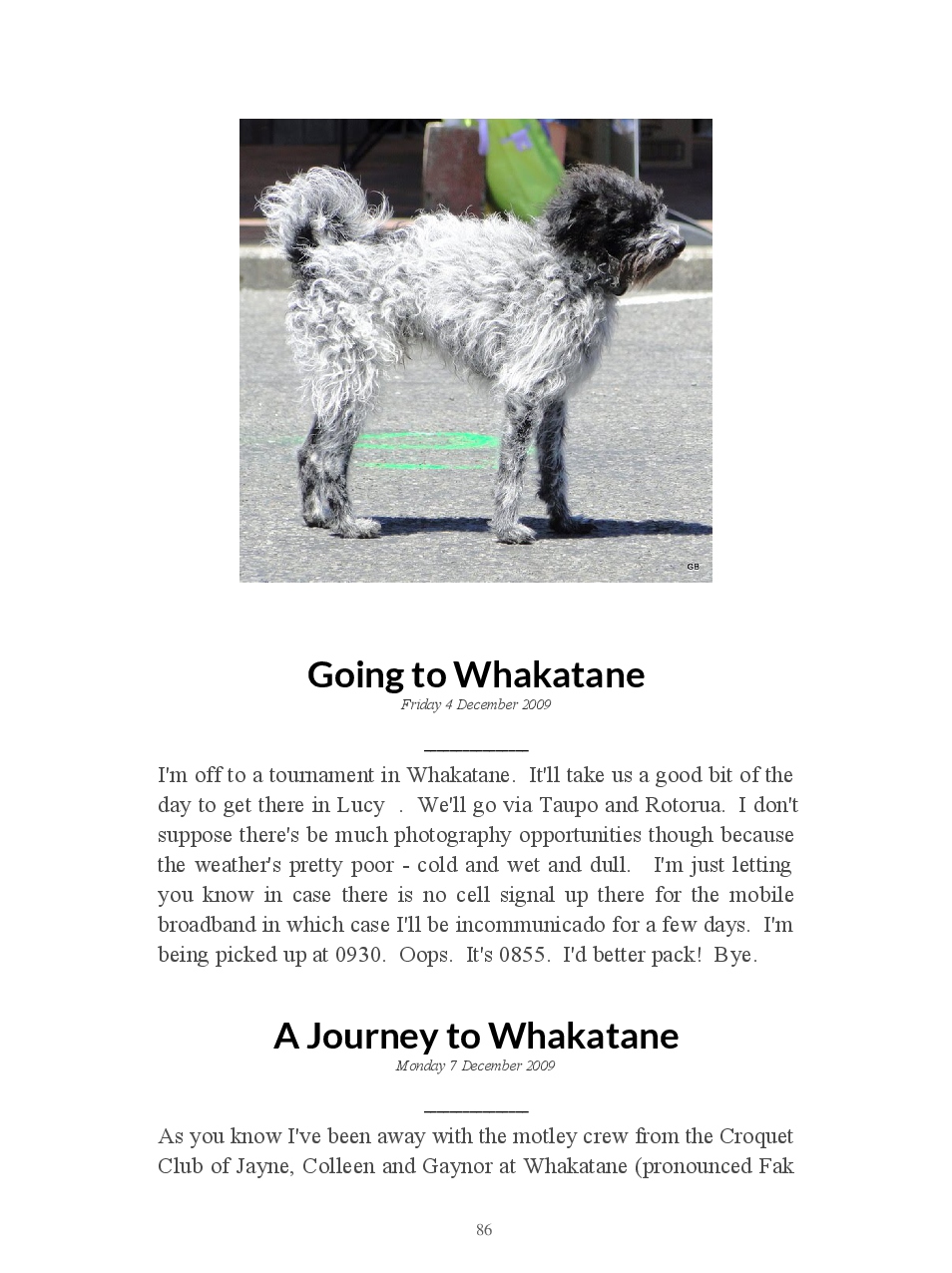 My fourth visit to New Zealand (despite the volumes for the previous visit erroneously making the same claim). My first safari to Northland with Pauline and the start of a long and valued friendship. A good year for croquet titles. Looking back as I write this summary I realise just how wonderful The Family and my life with them was.