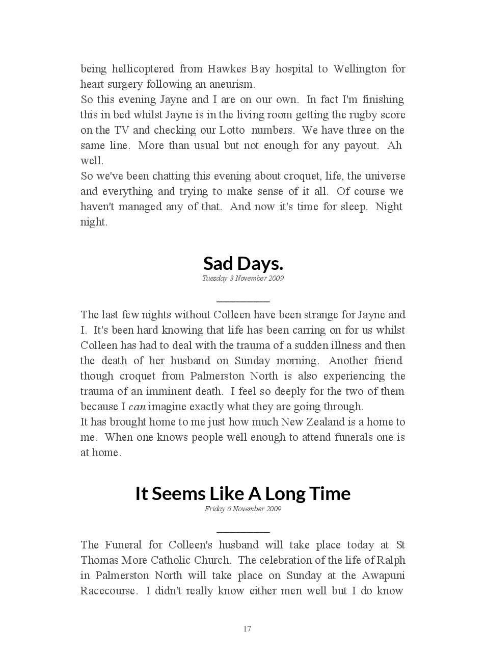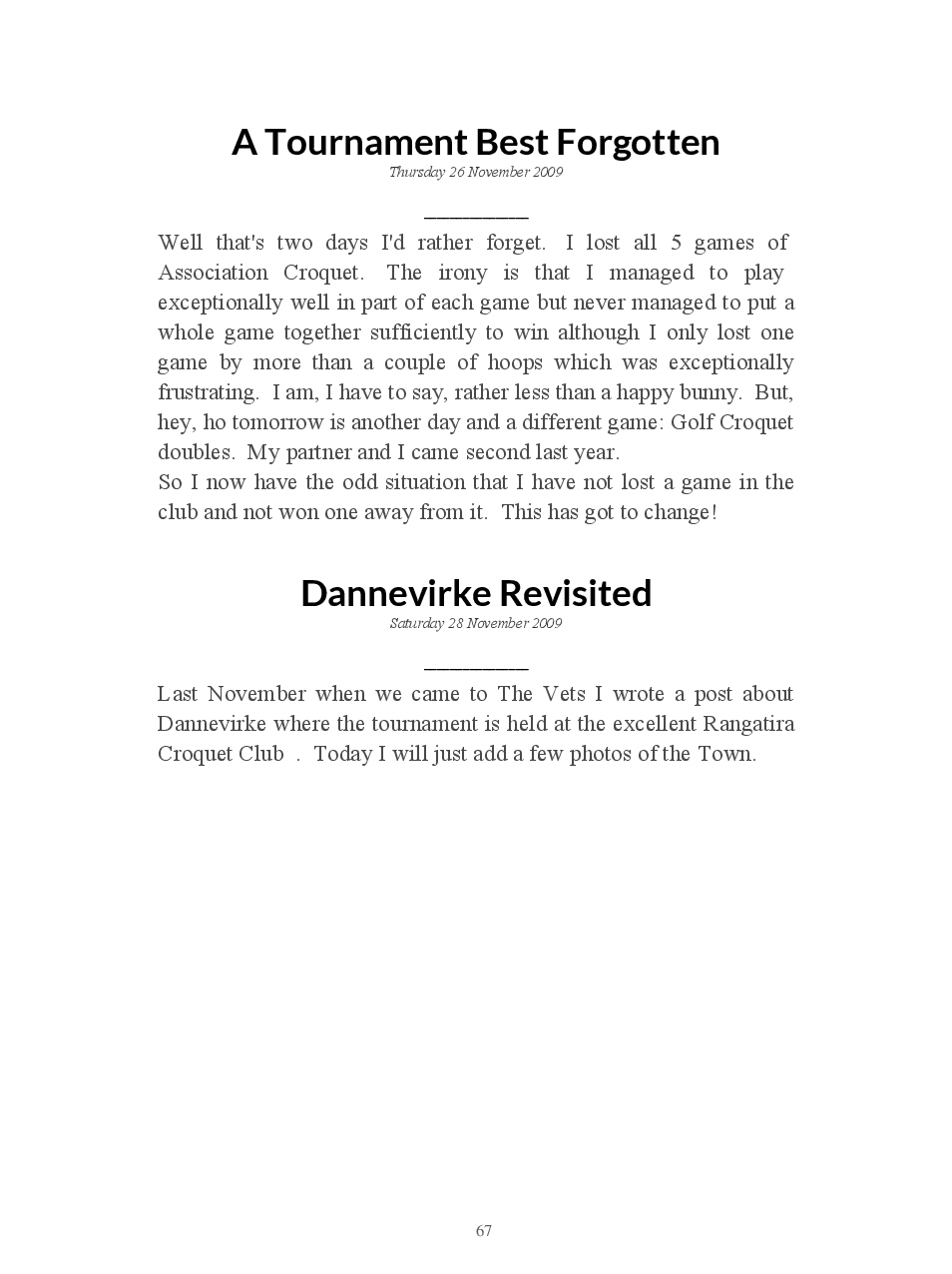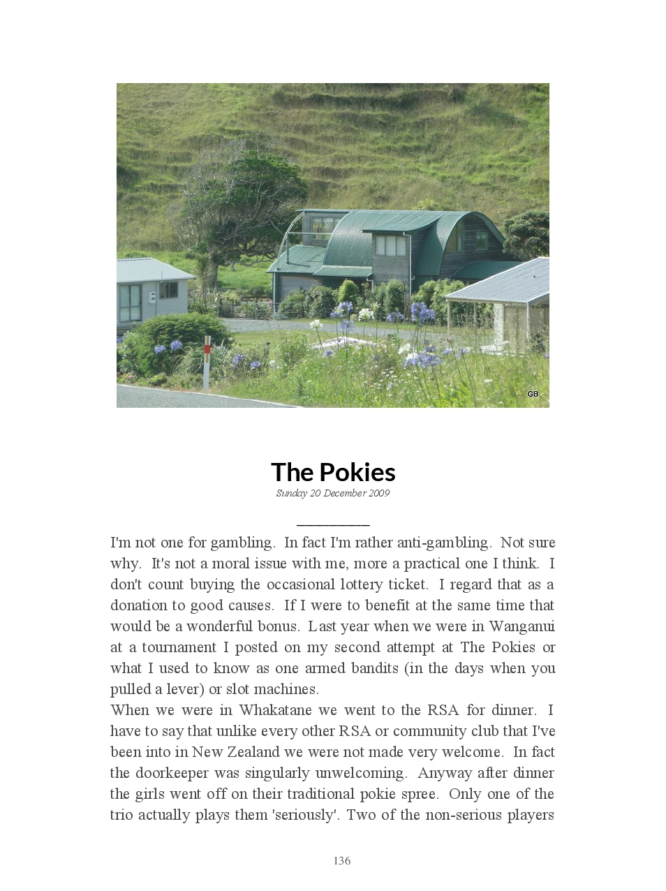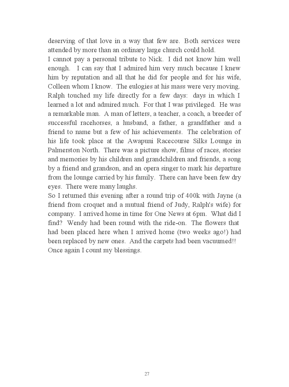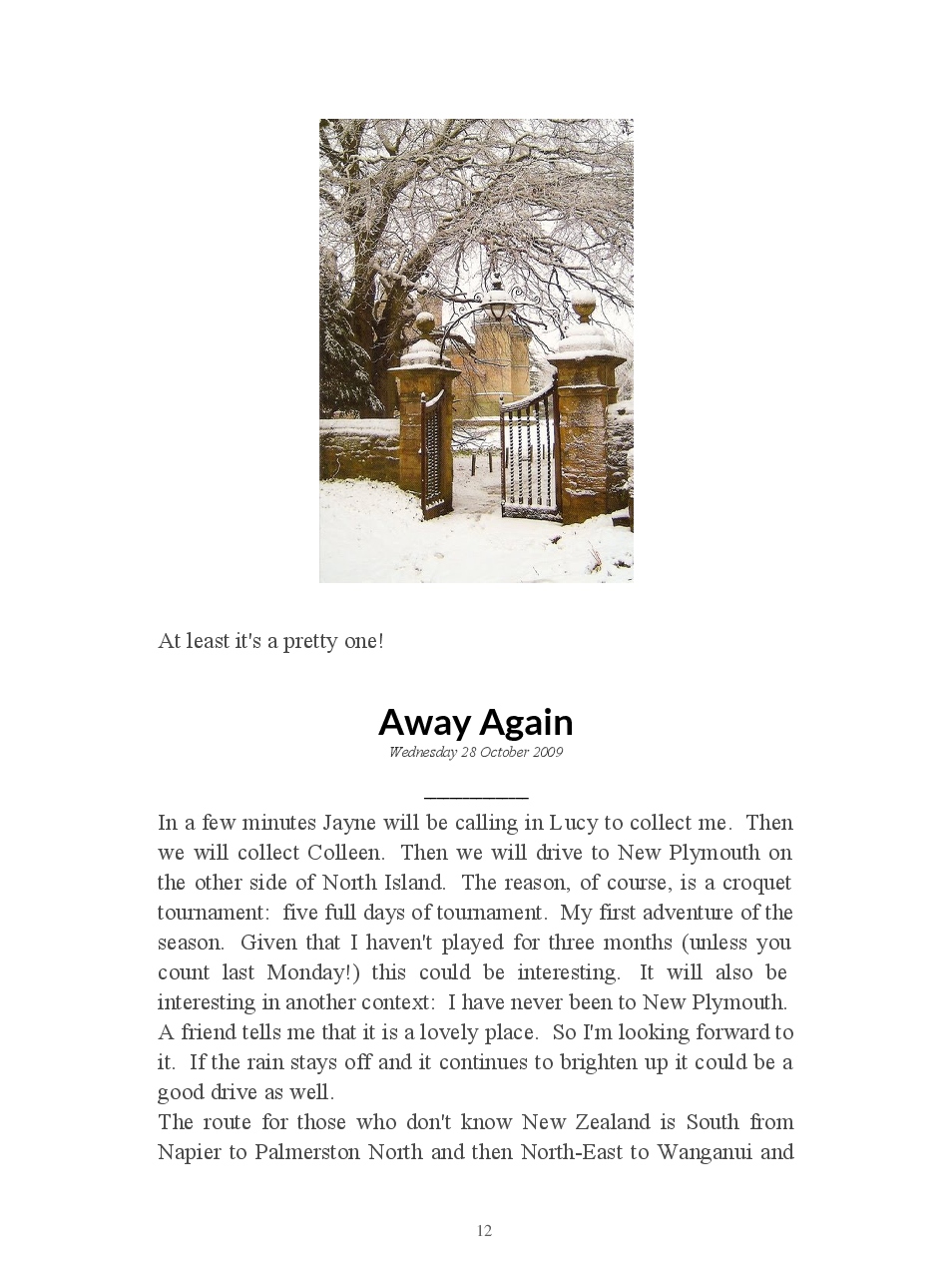 My fourth visit to New Zealand (despite the volumes for the previous visit erroneously making the same claim). My first safari to Northland with Pauline and the start of a long and valued friendship. A good year for croquet titles. Looking back as I write this summary I realise just how wonderful The Family and my life with them was.