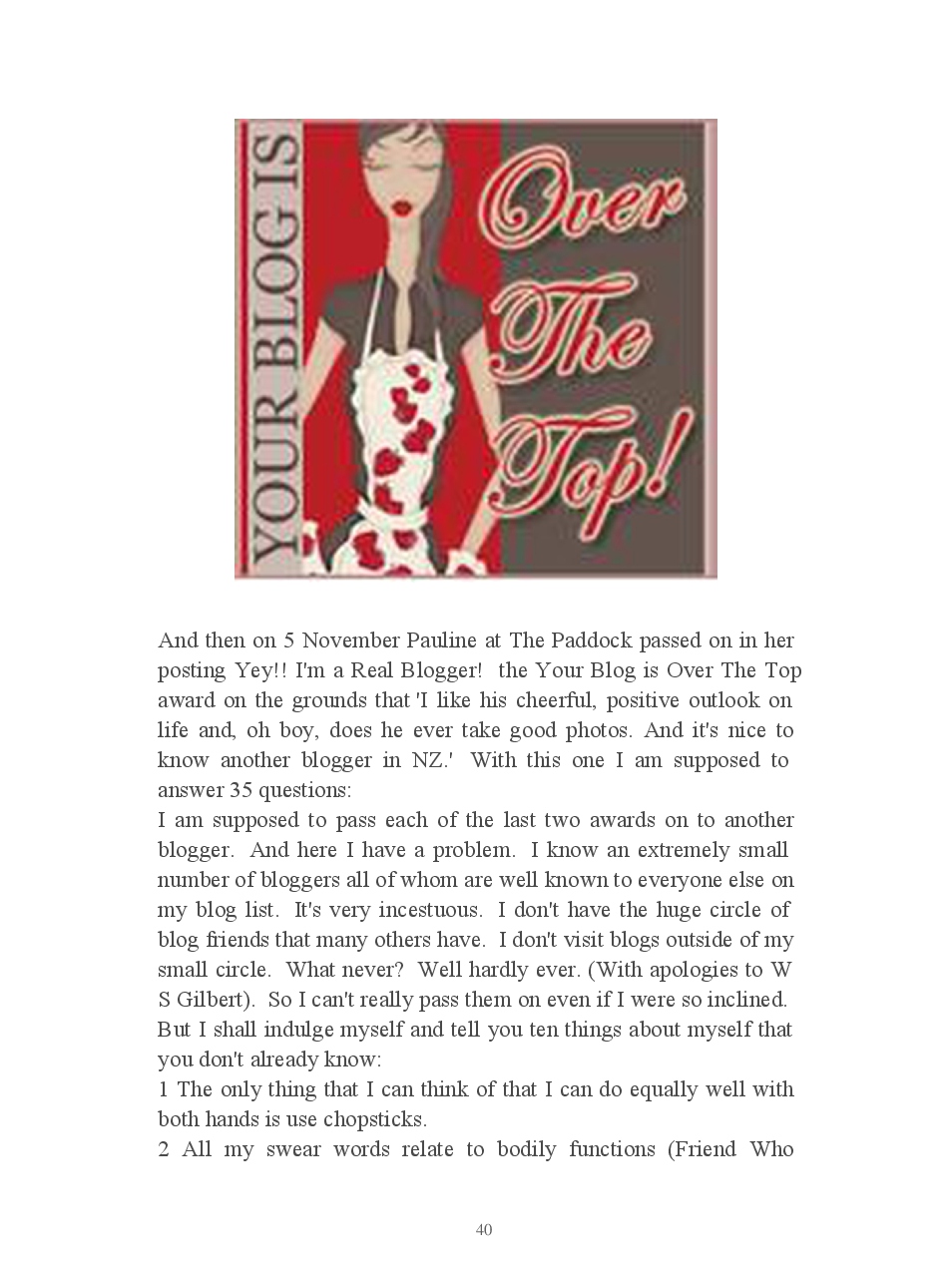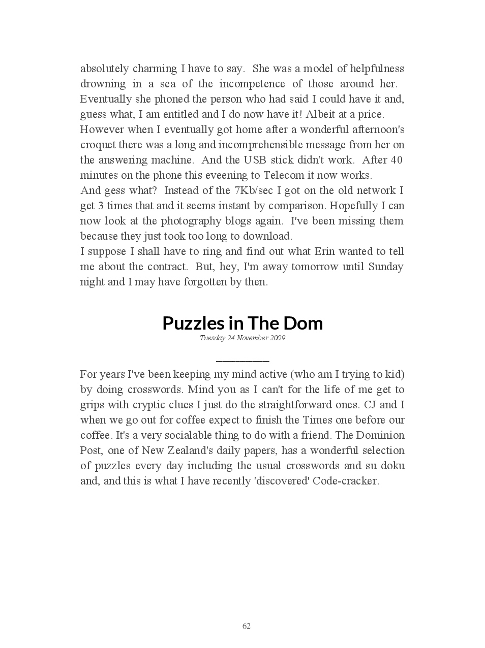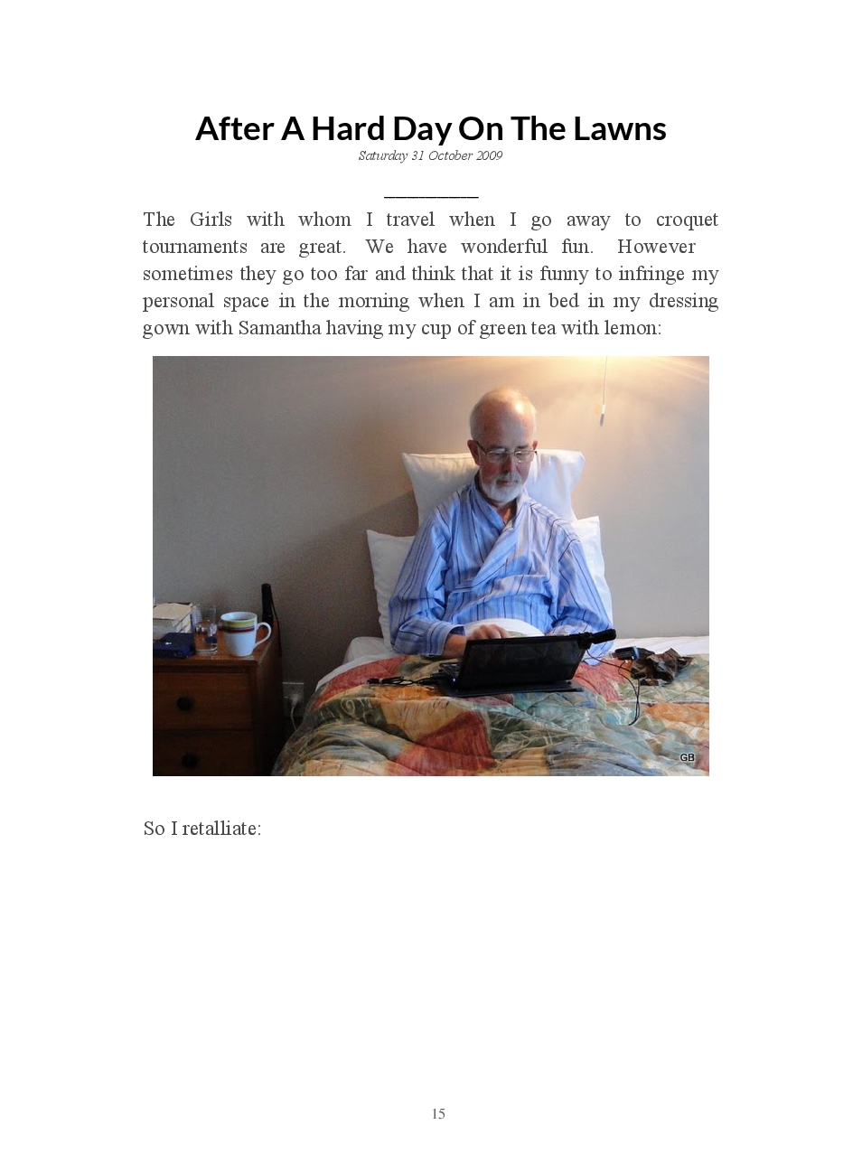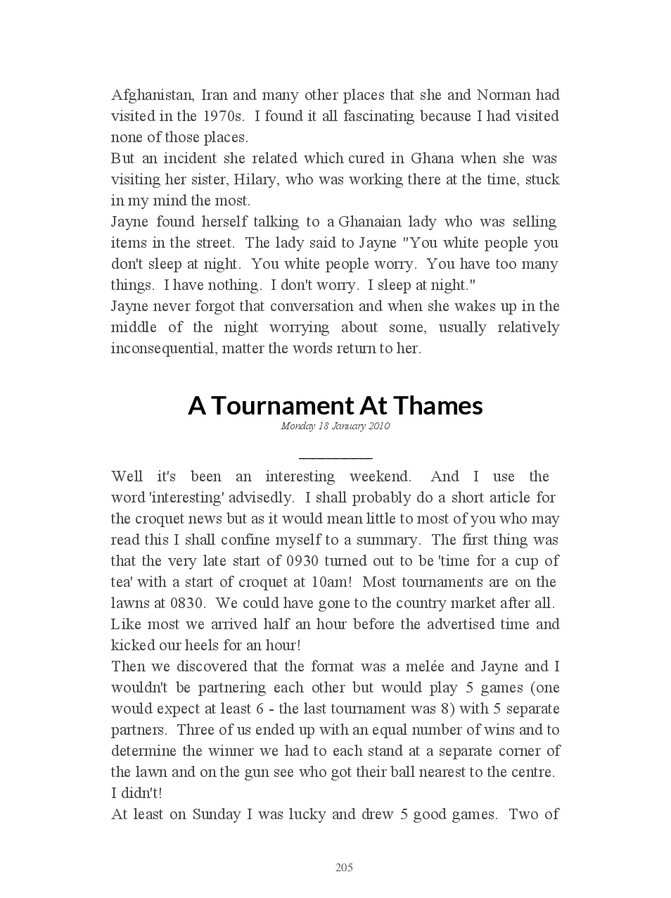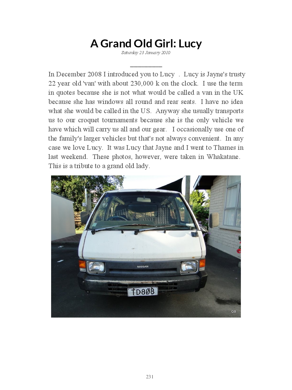 My fourth visit to New Zealand (despite the volumes for the previous visit erroneously making the same claim). My first safari to Northland with Pauline and the start of a long and valued friendship. A good year for croquet titles. Looking back as I write this summary I realise just how wonderful The Family and my life with them was.