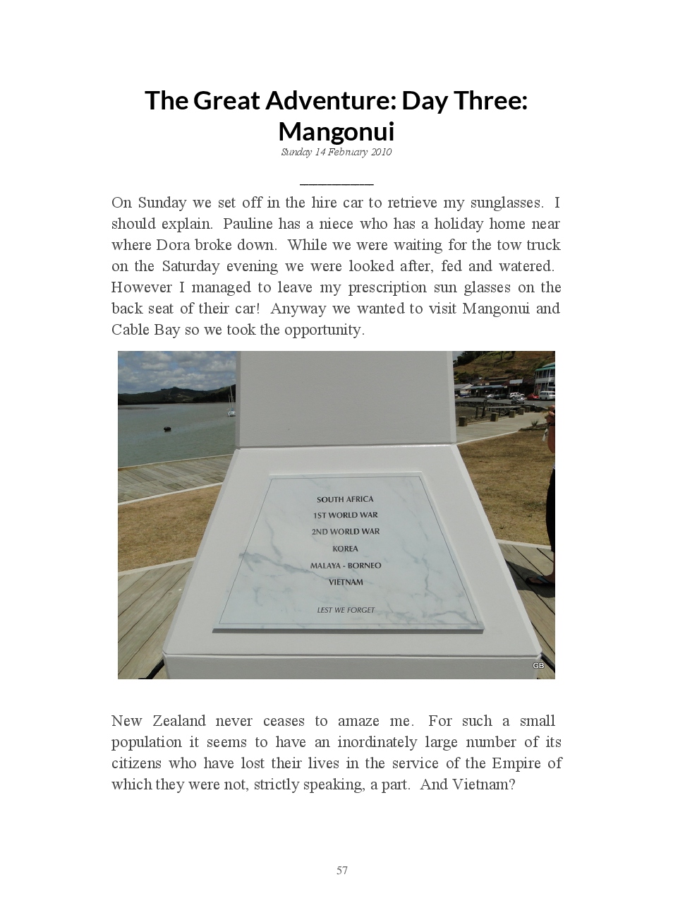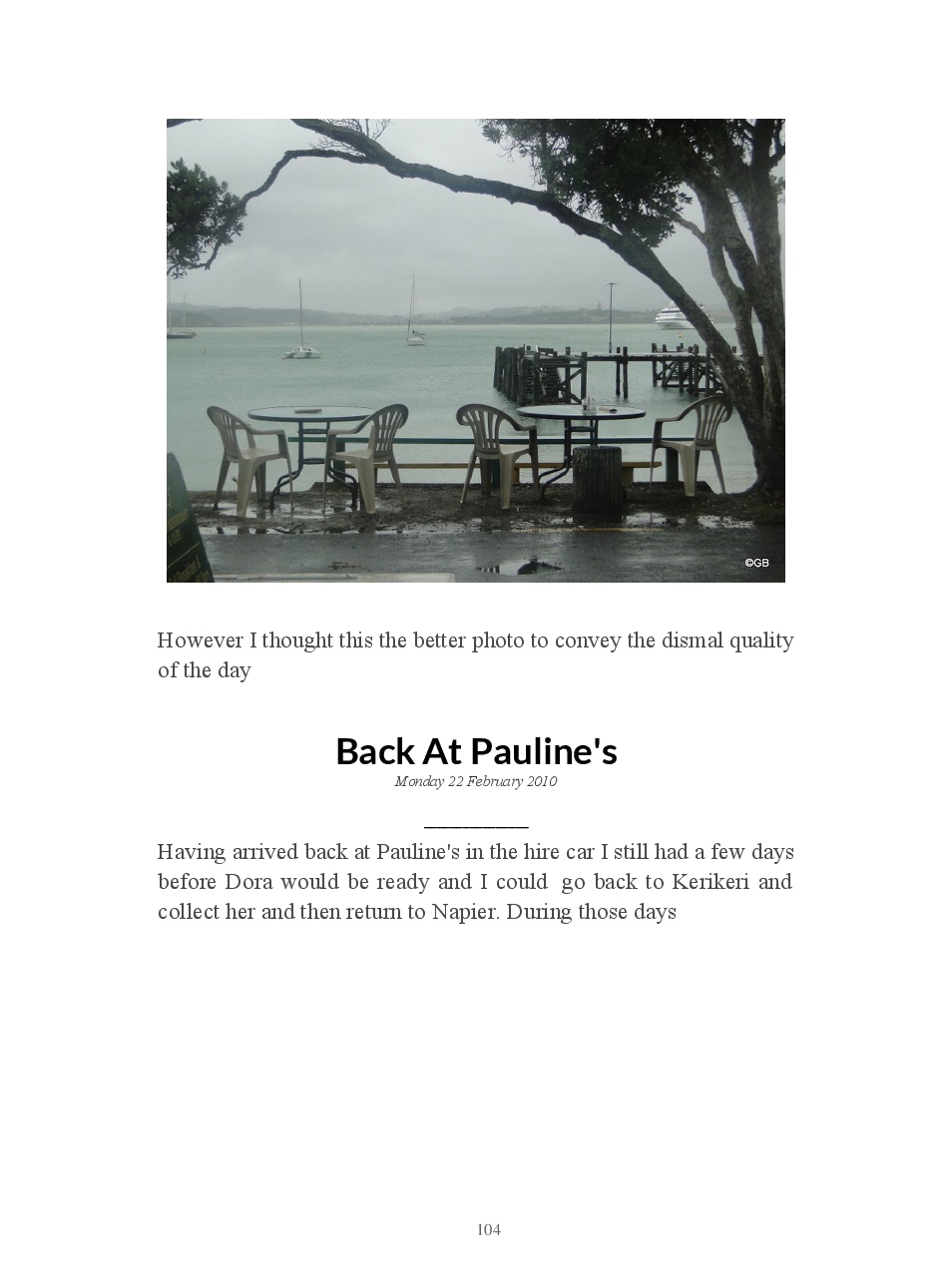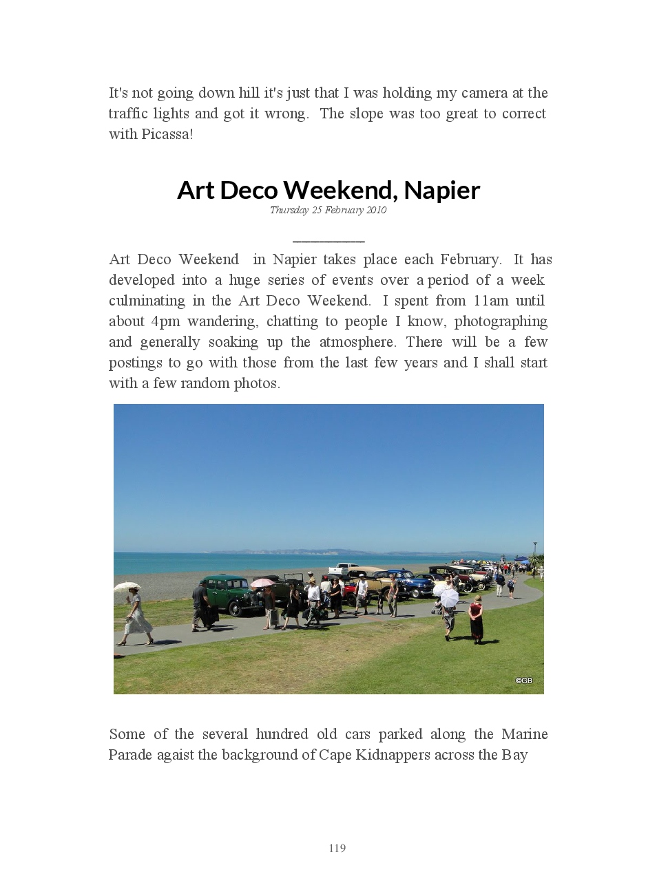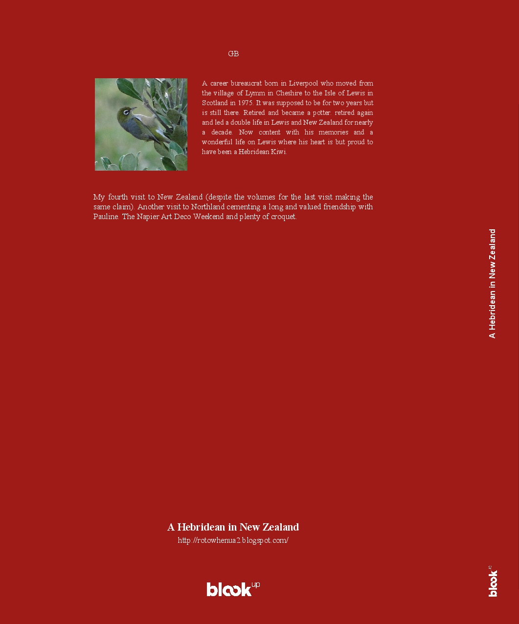 My fourth visit to New Zealand (despite the volumes for the last visit making the same claim). Another visit to Northland cementing a long and valued friendship with Pauline. The Napier Art Deco Weekend and plenty of croquet.