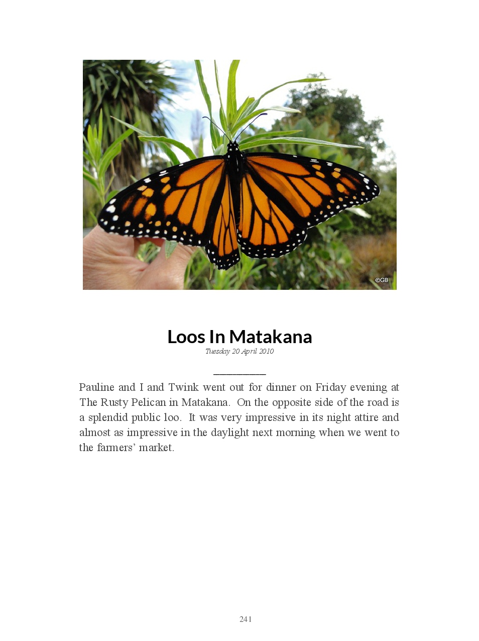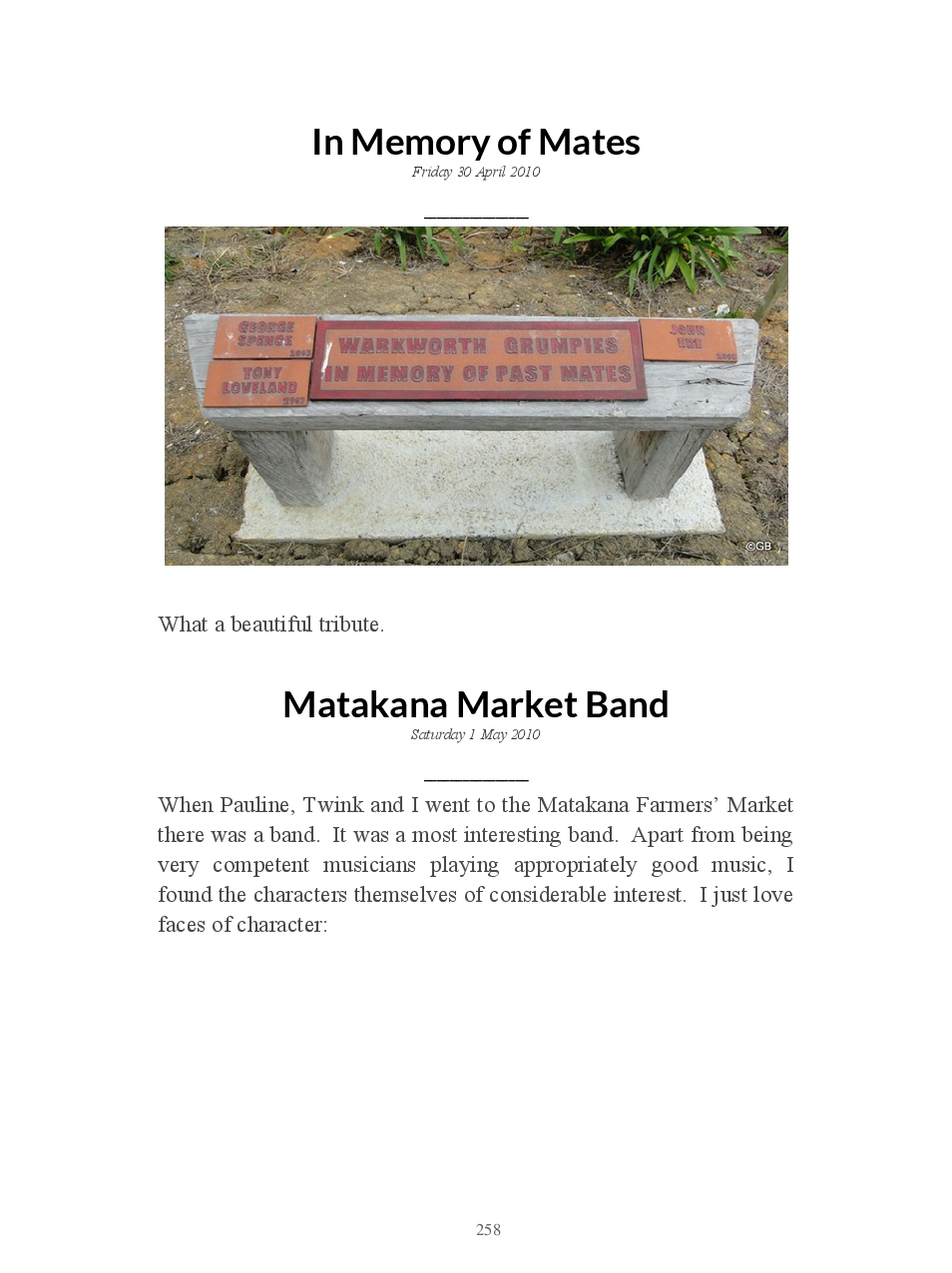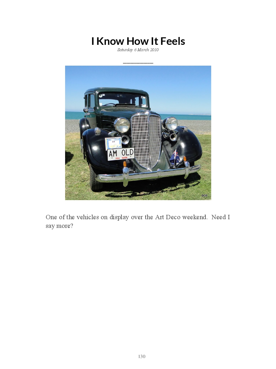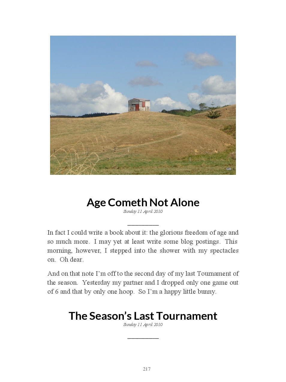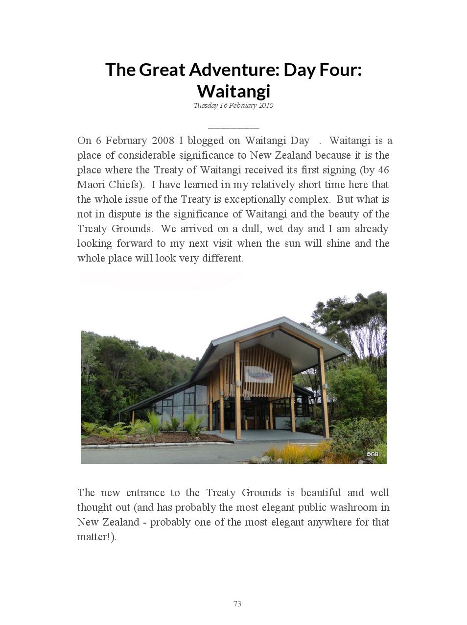 My fourth visit to New Zealand (despite the volumes for the last visit making the same claim). Another visit to Northland cementing a long and valued friendship with Pauline. The Napier Art Deco Weekend and plenty of croquet.