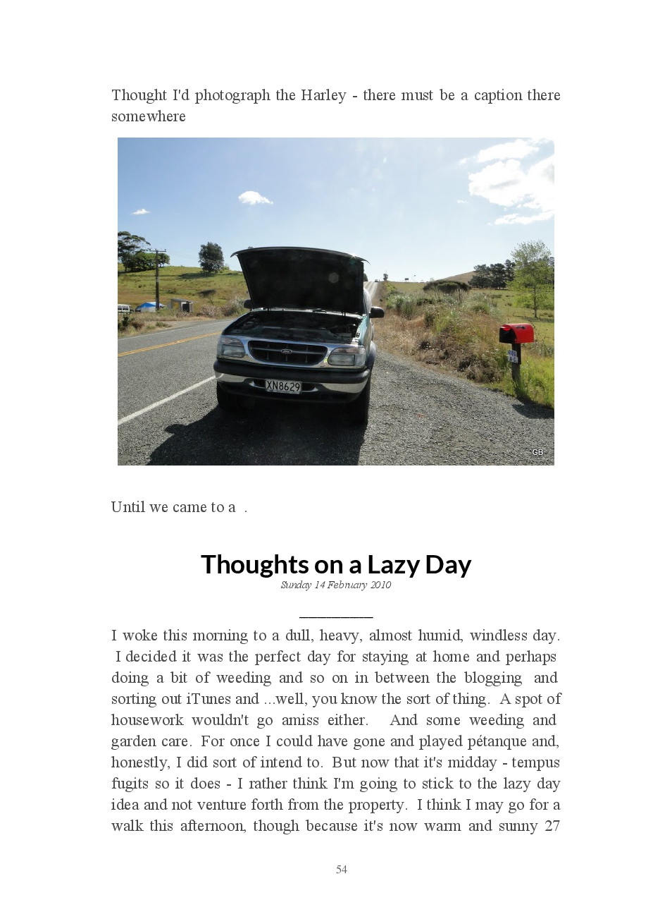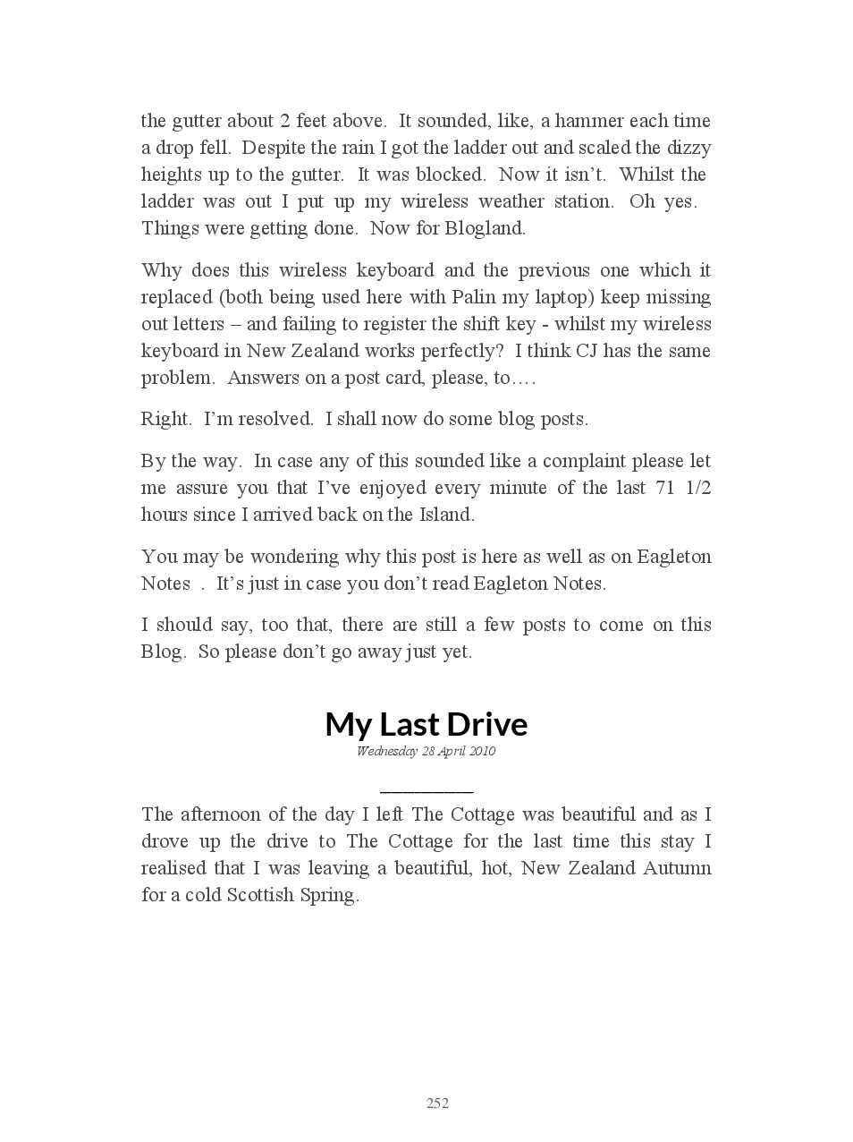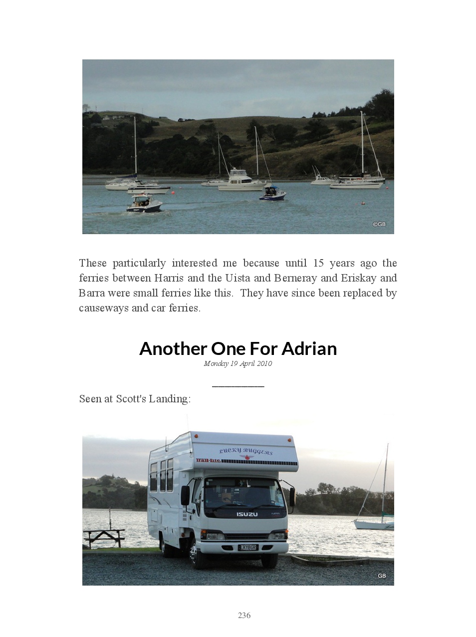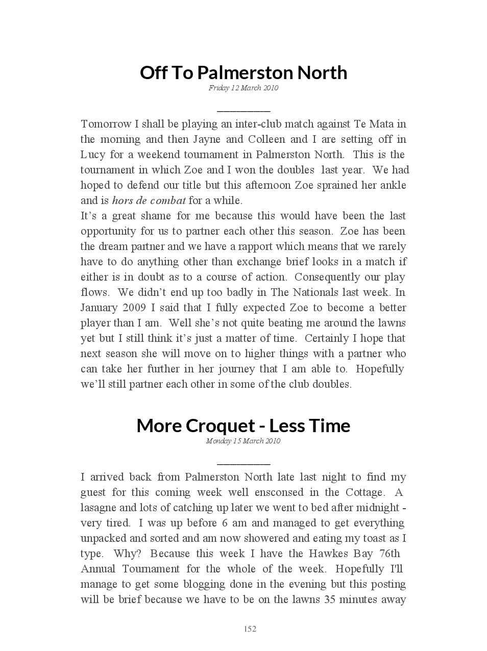 My fourth visit to New Zealand (despite the volumes for the last visit making the same claim). Another visit to Northland cementing a long and valued friendship with Pauline. The Napier Art Deco Weekend and plenty of croquet.