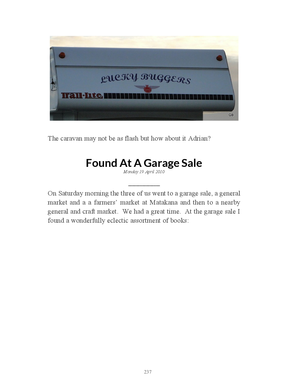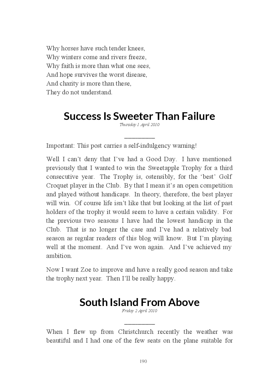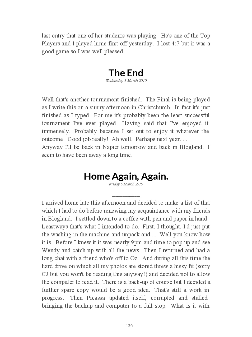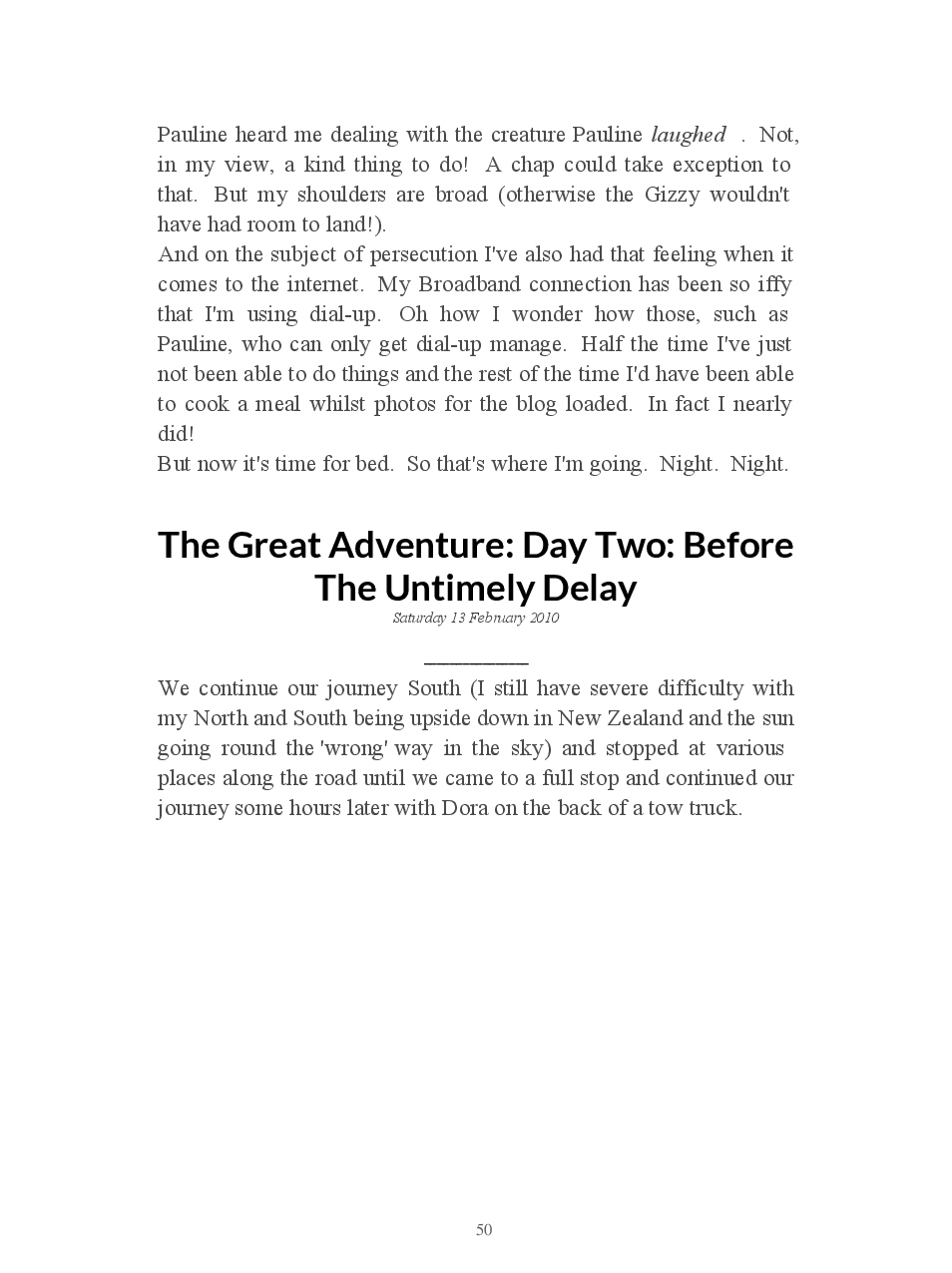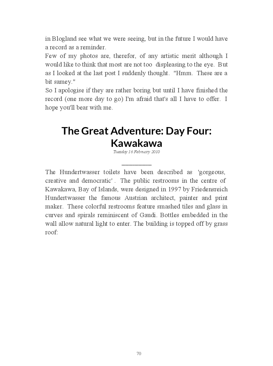 My fourth visit to New Zealand (despite the volumes for the last visit making the same claim). Another visit to Northland cementing a long and valued friendship with Pauline. The Napier Art Deco Weekend and plenty of croquet.