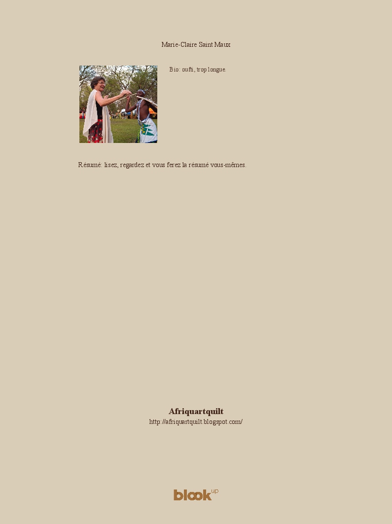 Marie-Claire Saint Maux made the blook of their their blog Blogger/Blogspot ! Support their creativity by buying their blook or create your own now on BlookUp!