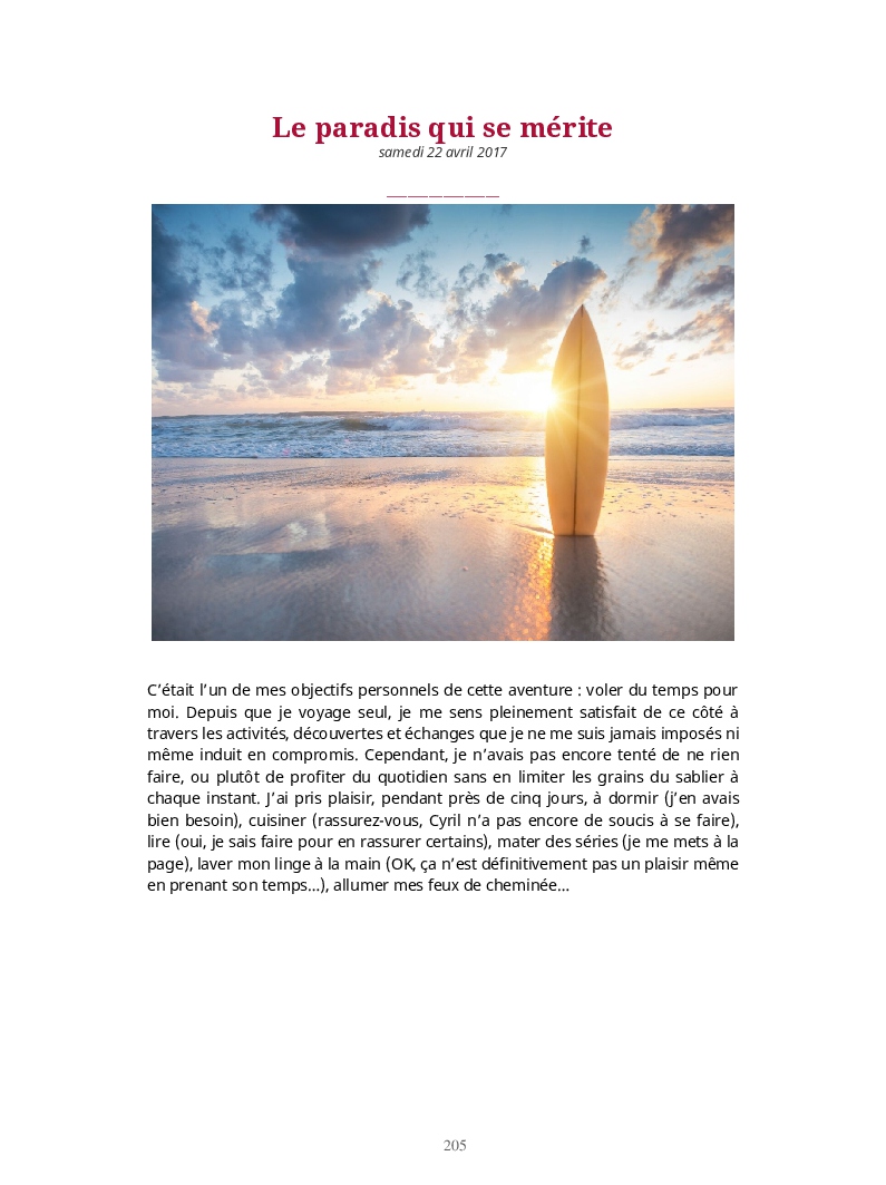 « Gargarisés par nos épreuves franchies avec succès, nous nous présentâmes au commandant qui dévisageait le vent maritime d’une mine inquiète. Nos craintes furent confirmées lorsqu’il déclara qu’une des 60 nuits au masque voilé allait se lever… La Force n’étant pas avec nous, notre guerre aux étoiles serait remise à plus tard. »