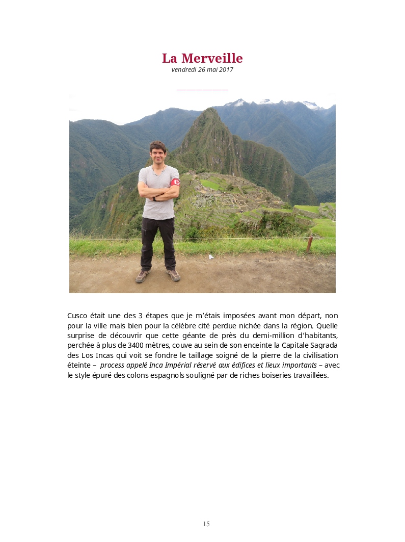 « Cet endroit m’a tout bonnement fasciné au point de me laisser que trop peu de mots pour pouvoir peindre sa grandiose envergure qui me laissera des frissons pour quelques temps encore. »