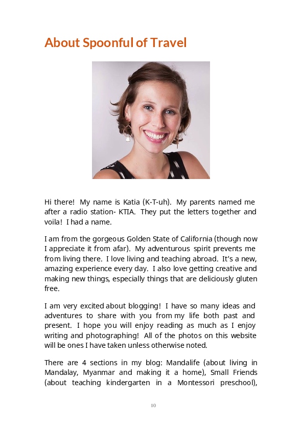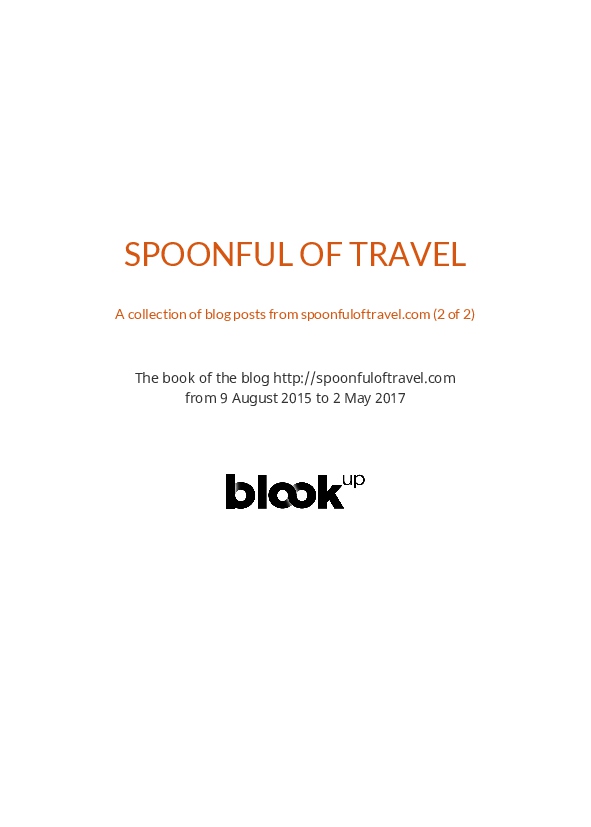 This book includes posts from 2 of the 4 categories of Katia's blog titled "Spoonful of Travel."