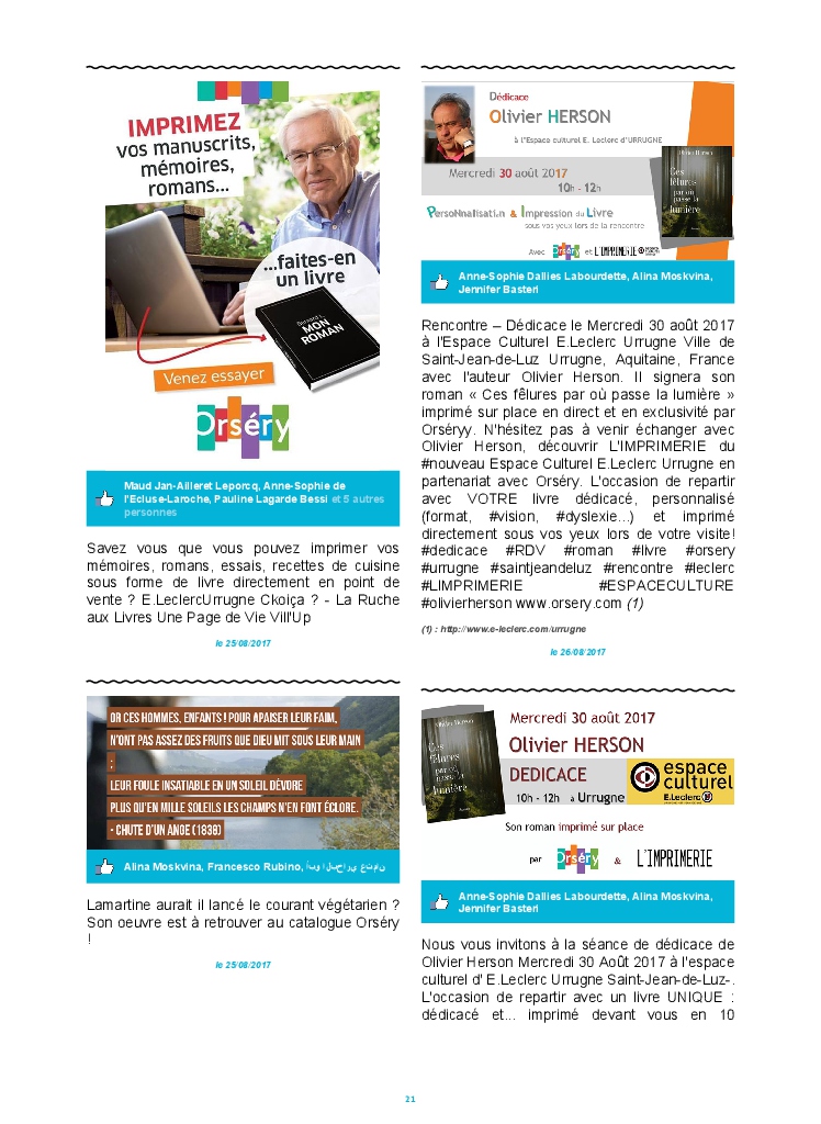 Cet ouvrage retranscrit au format "livre papier" l'actualité et la communication d'Orséry diffusées sur sa page Facebook durant l'été 2017.