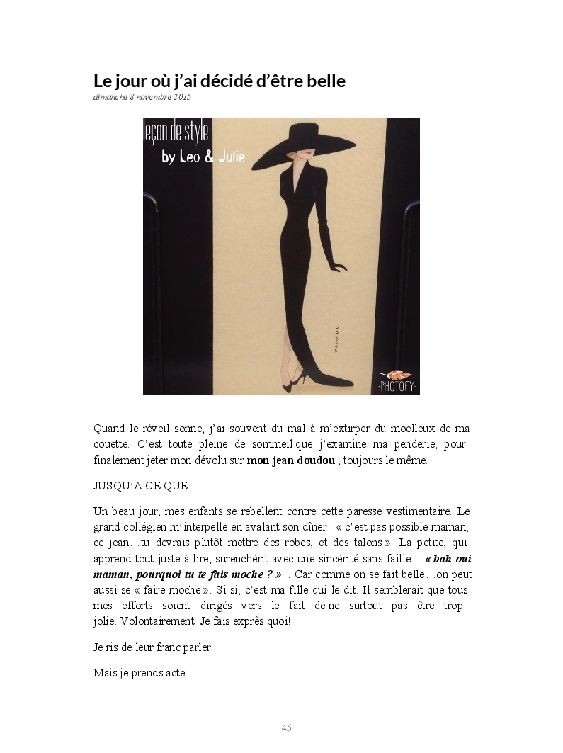 Aujourd’hui, j’ai la petite quarantaine, 2 enfants, un appartement à Paris, et les cheveux teints en blond.