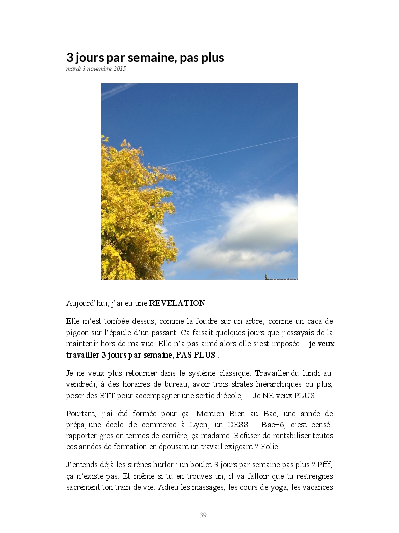 Aujourd’hui, j’ai la petite quarantaine, 2 enfants, un appartement à Paris, et les cheveux teints en blond.
