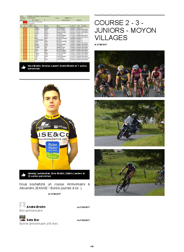 Du lancement de l'école française de cyclisme à la Gentlemen d'octobre en passant par les randonnées, l'inter-régions cadets et les différentes épreuves auxquelles ont participé nos coureurs pendant toute cette saison ce sont plus de 250 pages de photos, commentaires et publications qui composent ce livre.